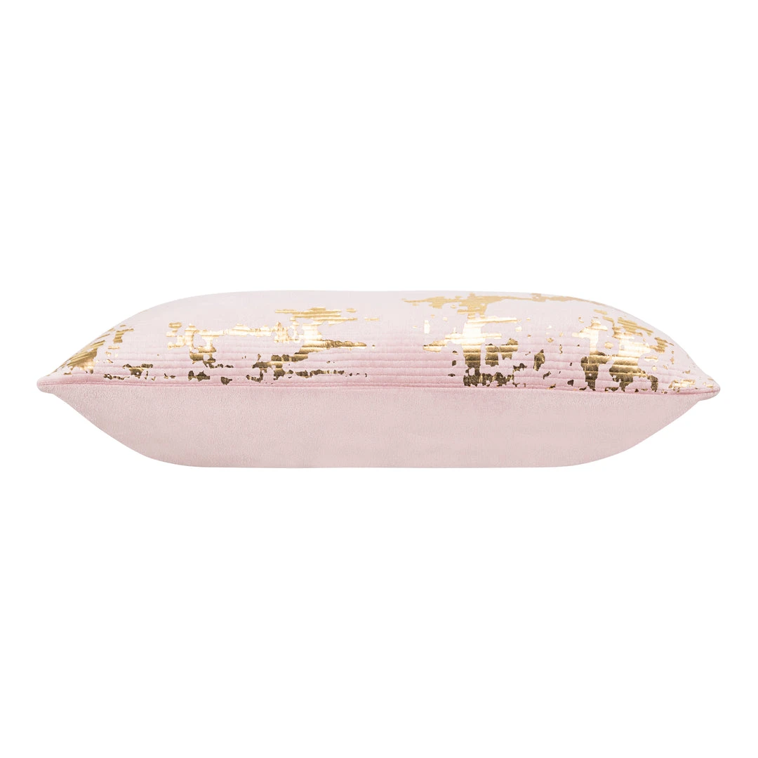 Mauve Velvet with Quilting and shiny gold foil print pillow with knife edge. Back: matching velvet.