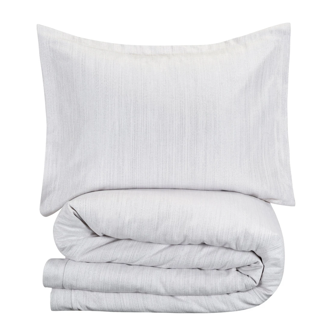 Dreams Collection- King Silver Metallic Thread Ivory Duvet cover with matching King Shams
