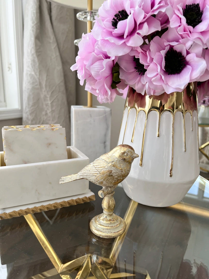 Inspire Me! Home Decor White Ceramic Candle Holder With Gold Elegant Details (2 Sizes)