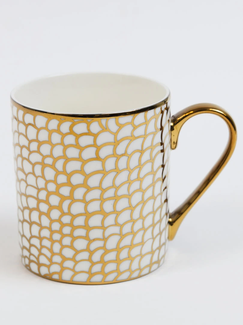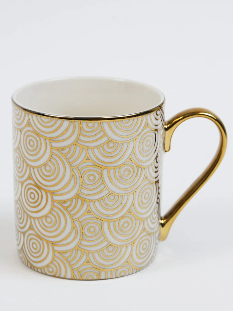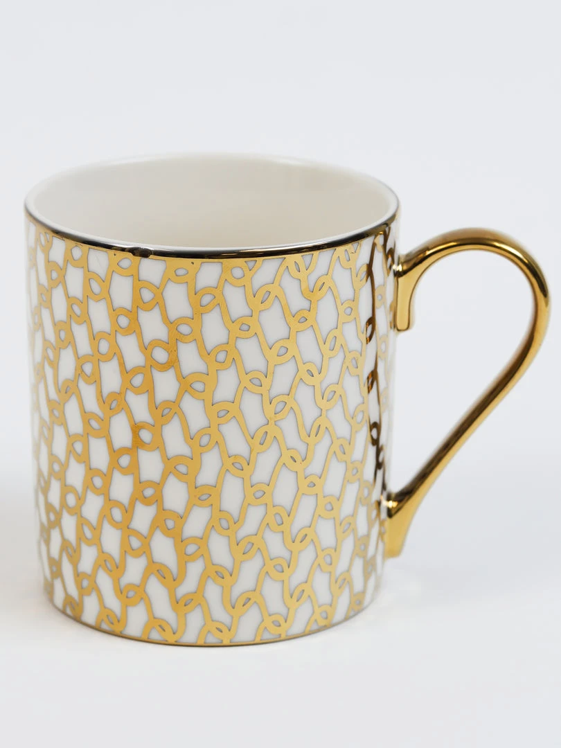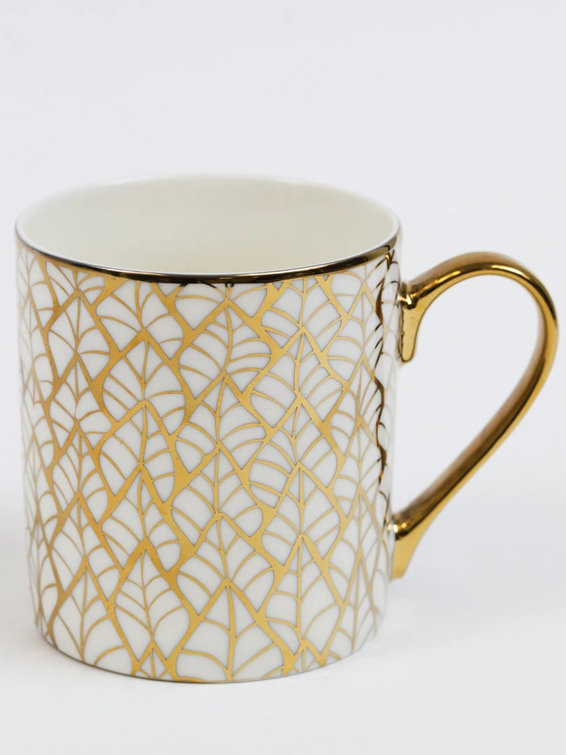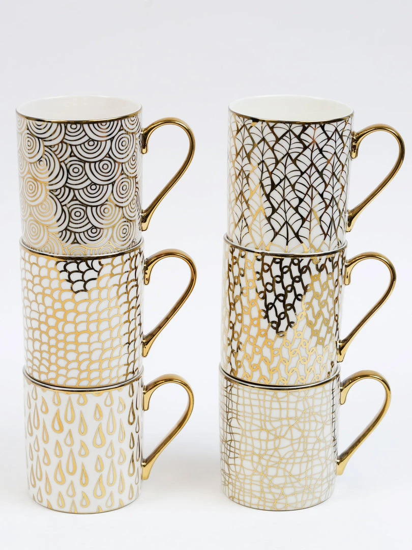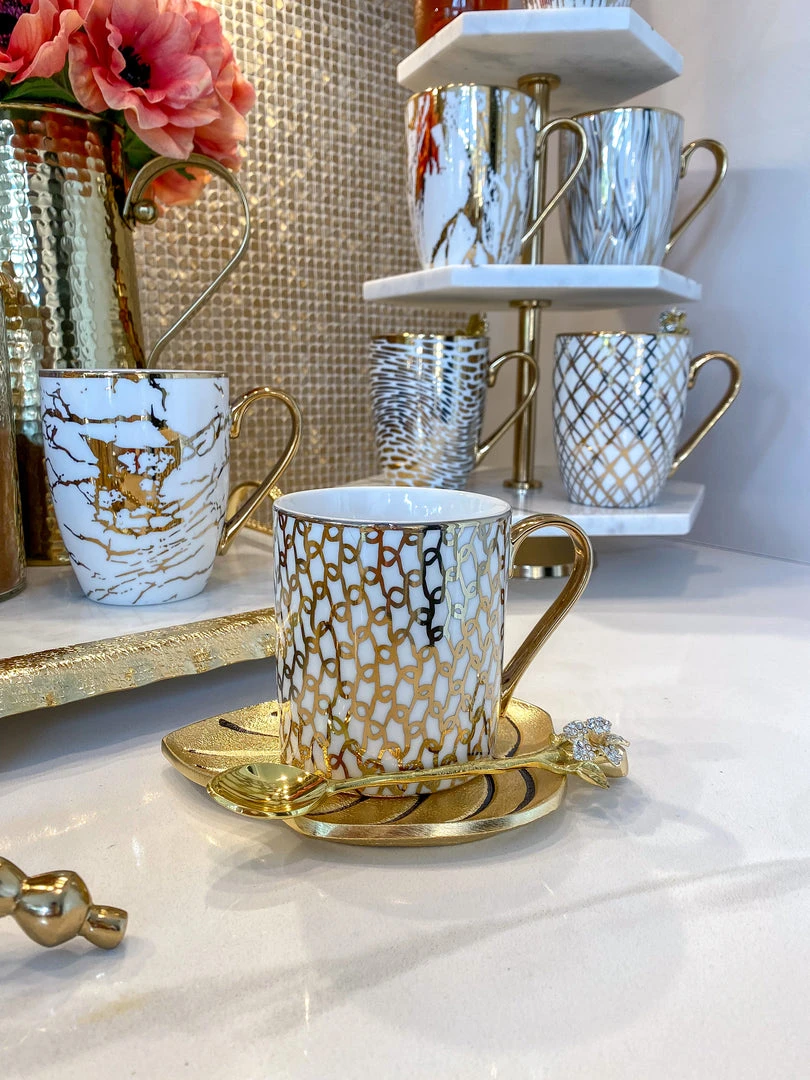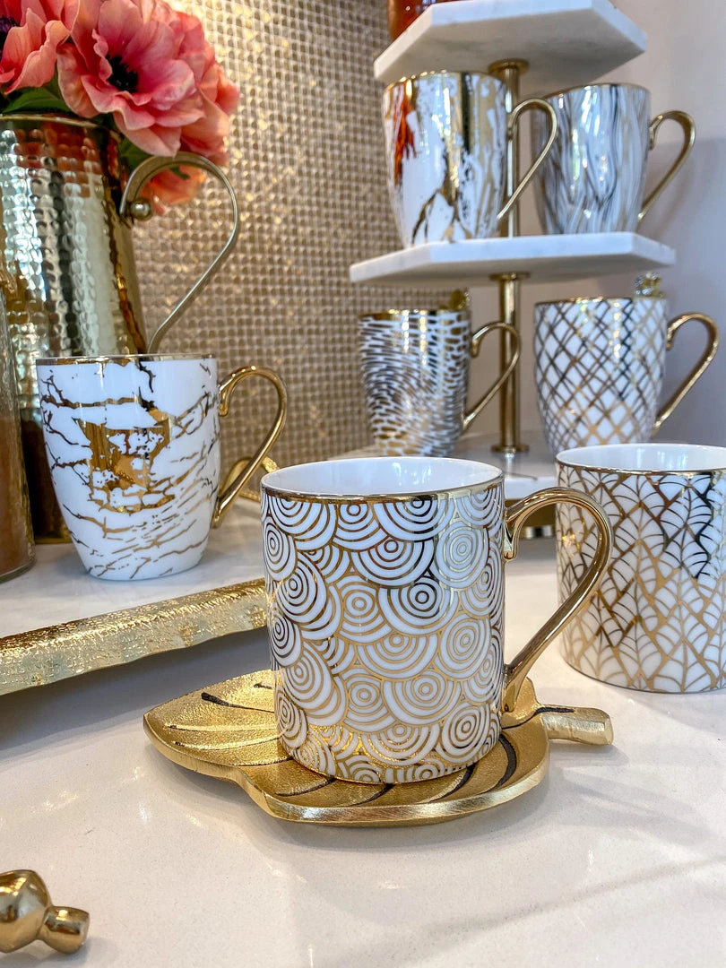 Description: These stunning gold and white mugs are perfect for your coffee station! Available in 6 designs, each sold separately.