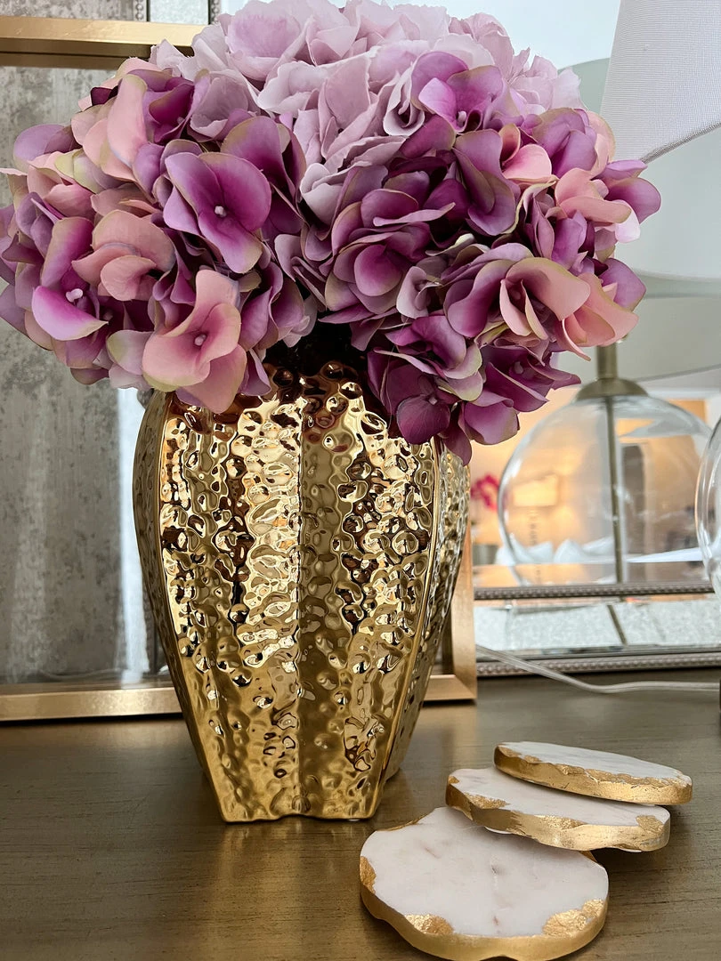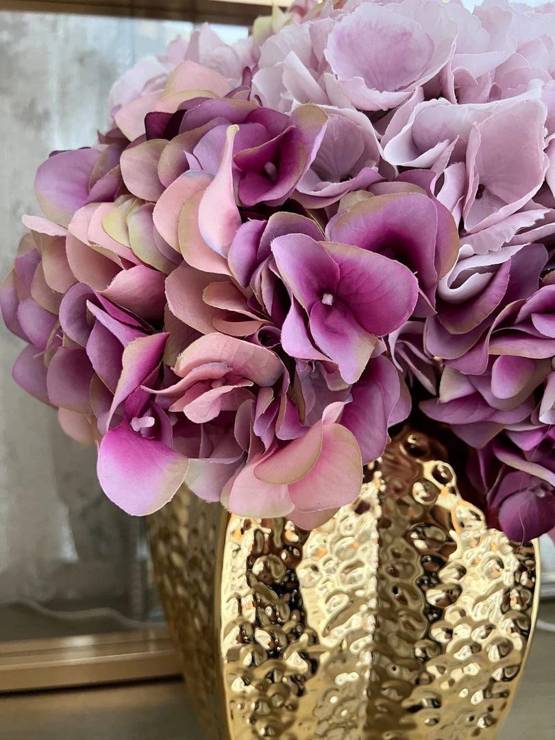 Description: This ravishing Victorian Two Tone Hydrangea Stem is the perfect accessory this season! The bright colors offer elegance to your home and the glitter adds a dazzling effect!