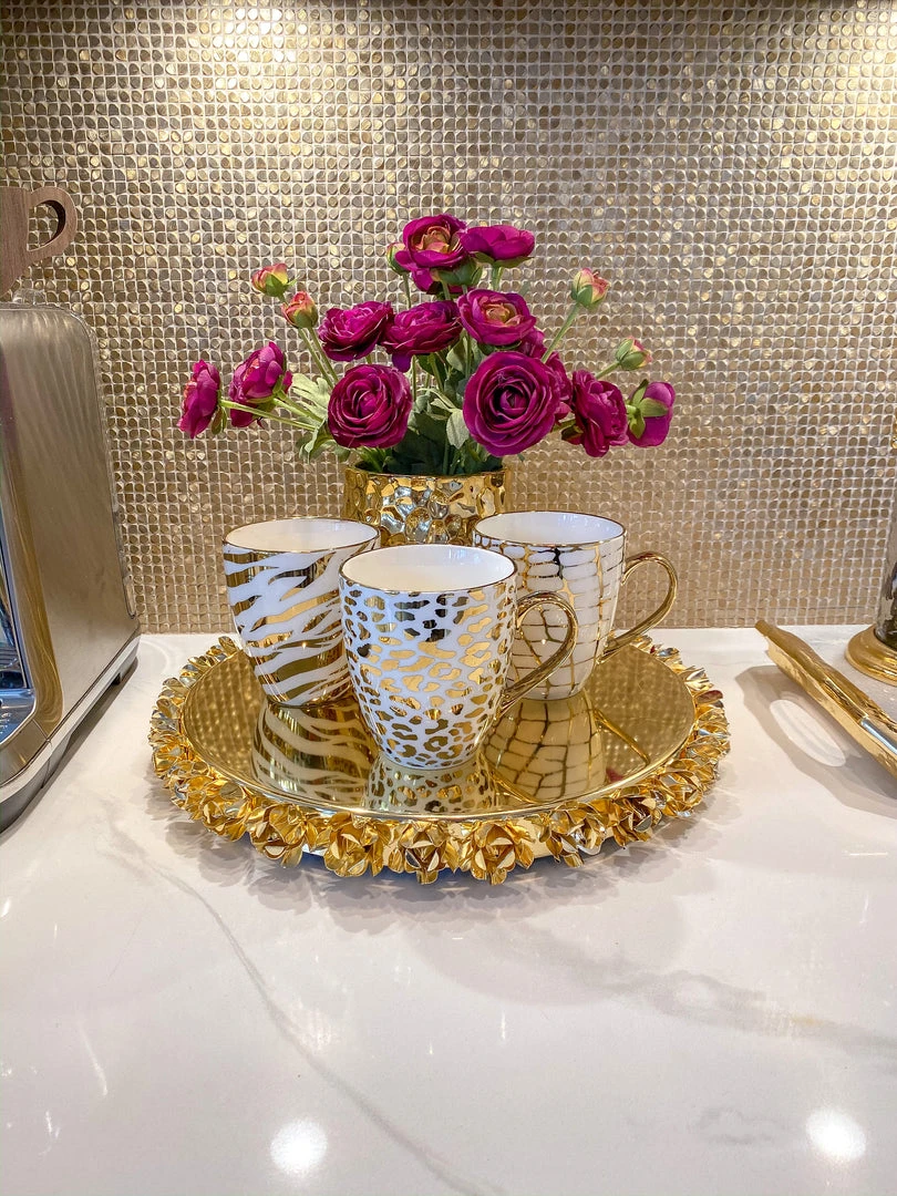 Inspire Me! Home Decor Round Marble Tray With Gold Edge And Metal Details