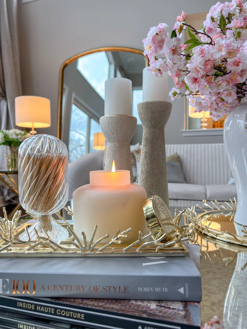 Description: This is a gorgeous frosted candle with a gold decorative detailed lid. The scent is French Vanilla.