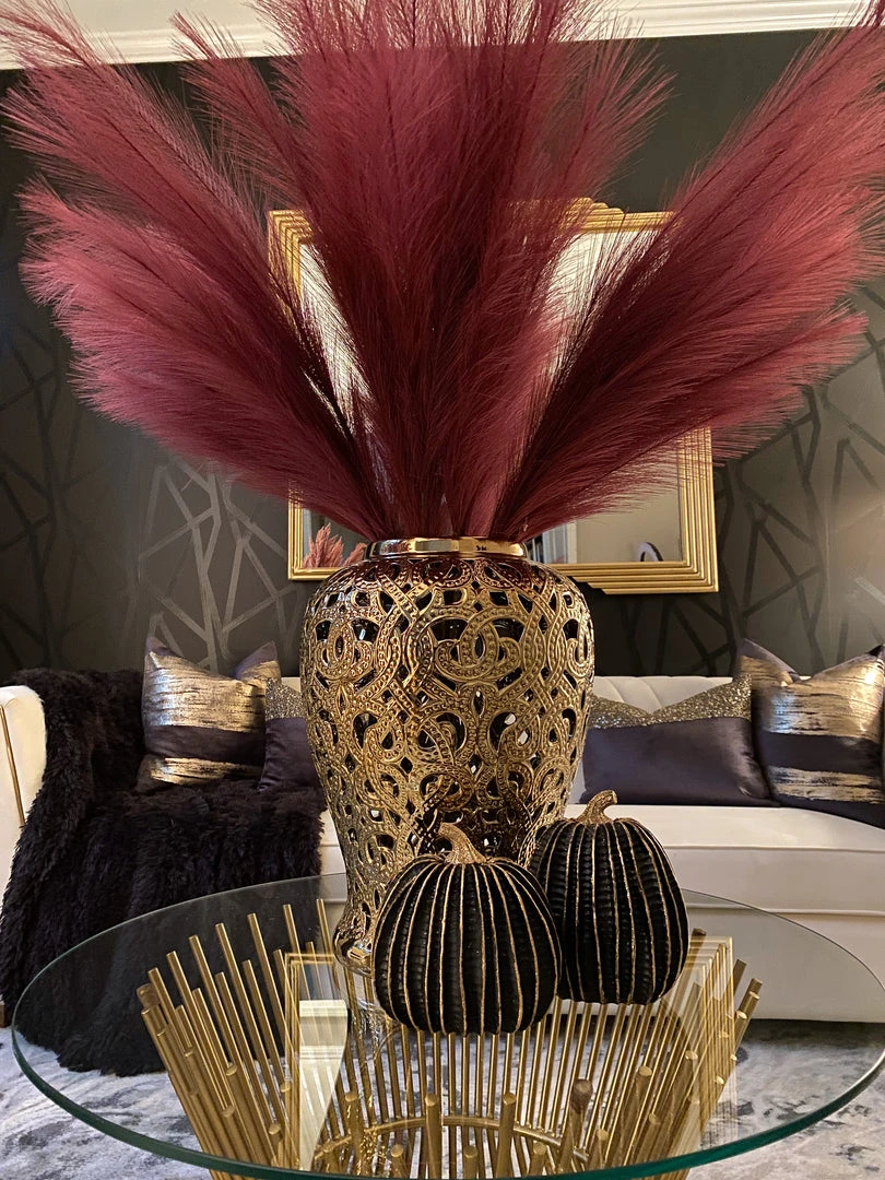 Description: These black resin pumpkins are perfect for adding that mysterious elegance to your fall decor! We love the deep black color and the gold glitter accents that add to the glamour of this piece! Sold as a set of 2.