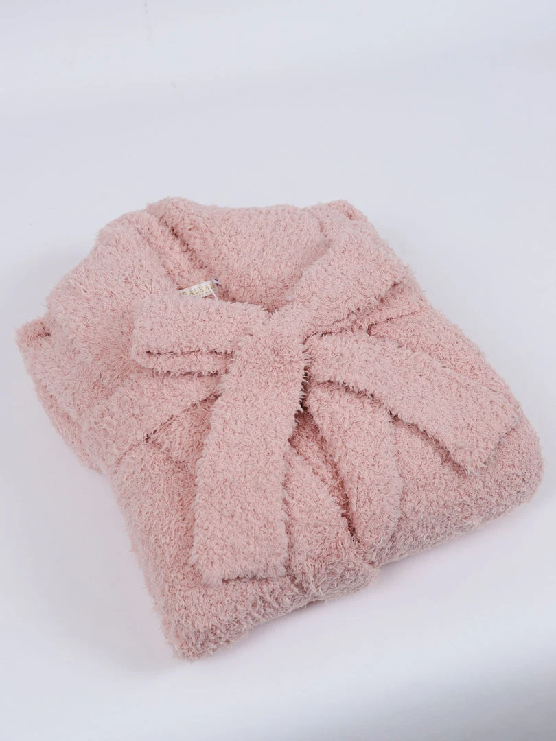 Description: The perfect lounge accessory! This beautiful blush robe is available in a soft blush pink color, and features a belt and pockets!