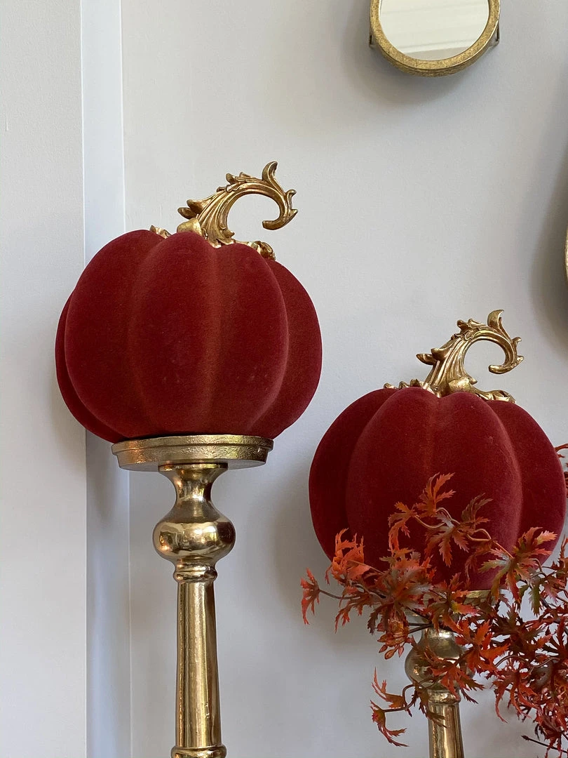 Description: These mini velvet pumpkins are the definition of fall! We love styling them in our bowls or on our trays! This unique burnt orange color is so fun to style for fall!