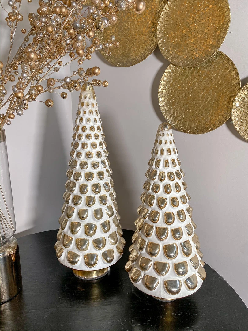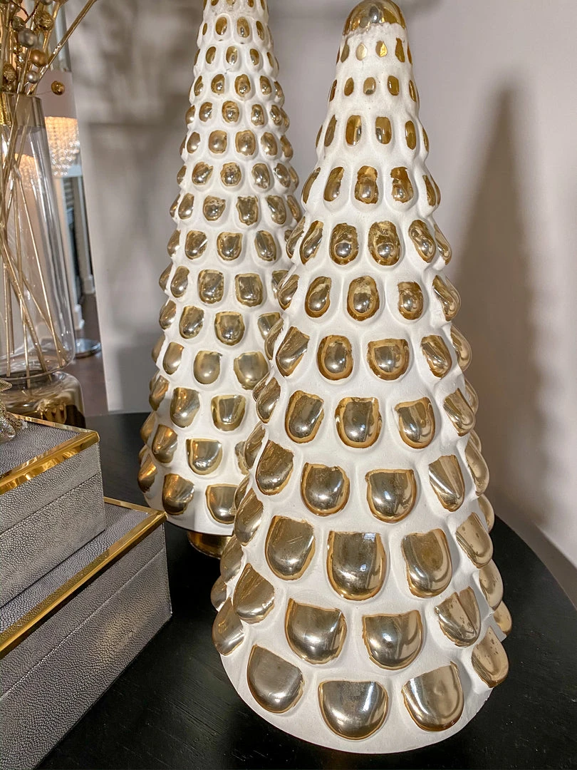 This gorgeous ceramic tree has metallic gold accents and a gold trunk.