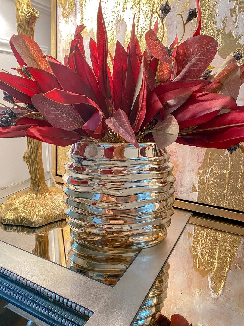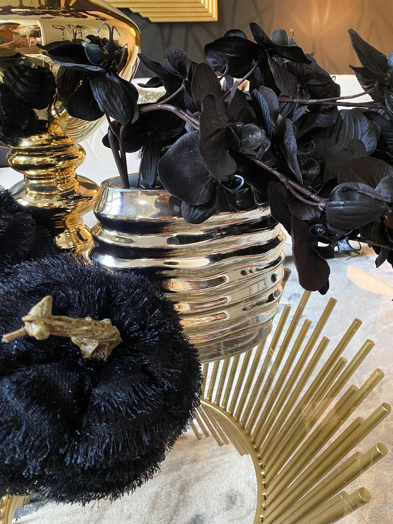Description: This beautiful vase is perfect for any floral arrangement! We love the beautiful ripple texture and the glossy champagne color!