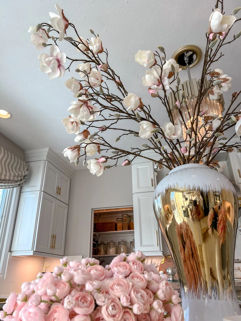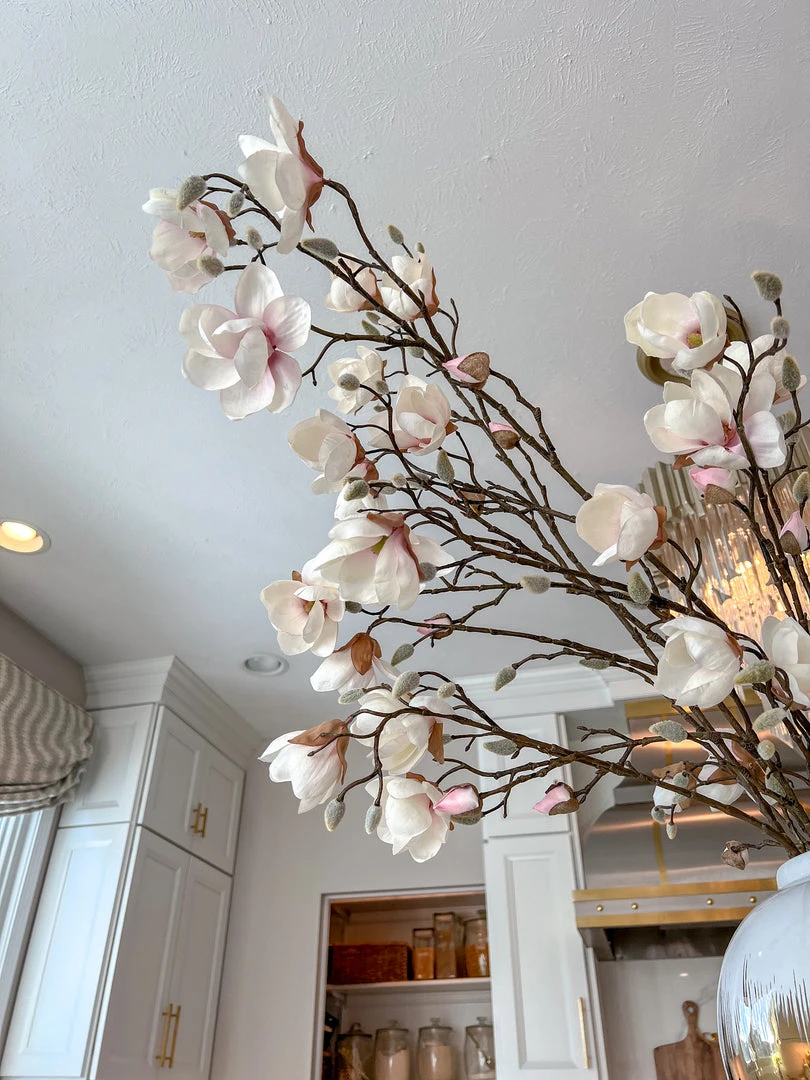 Description: These faux cream magnolia stems are great to style during any season! The stunning colors at a pop to any room.