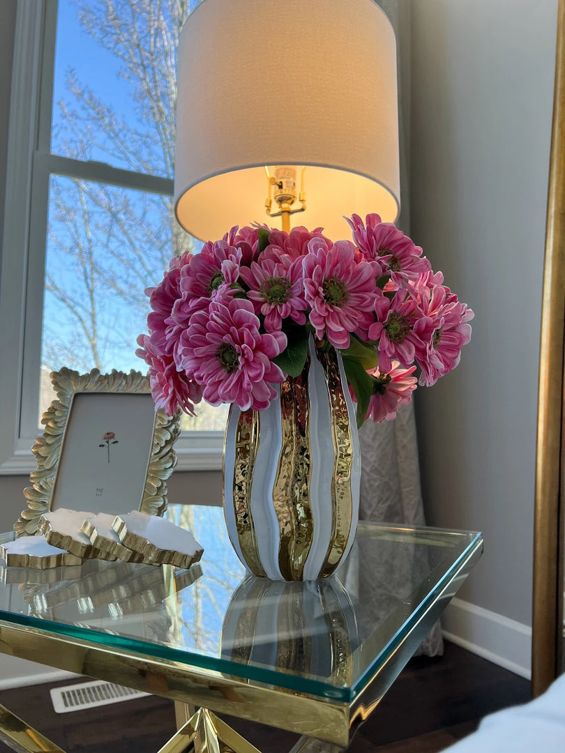 Inspire Me! Home Decor White Ceramic Vase With Stunning Gold Floral Detailed Center