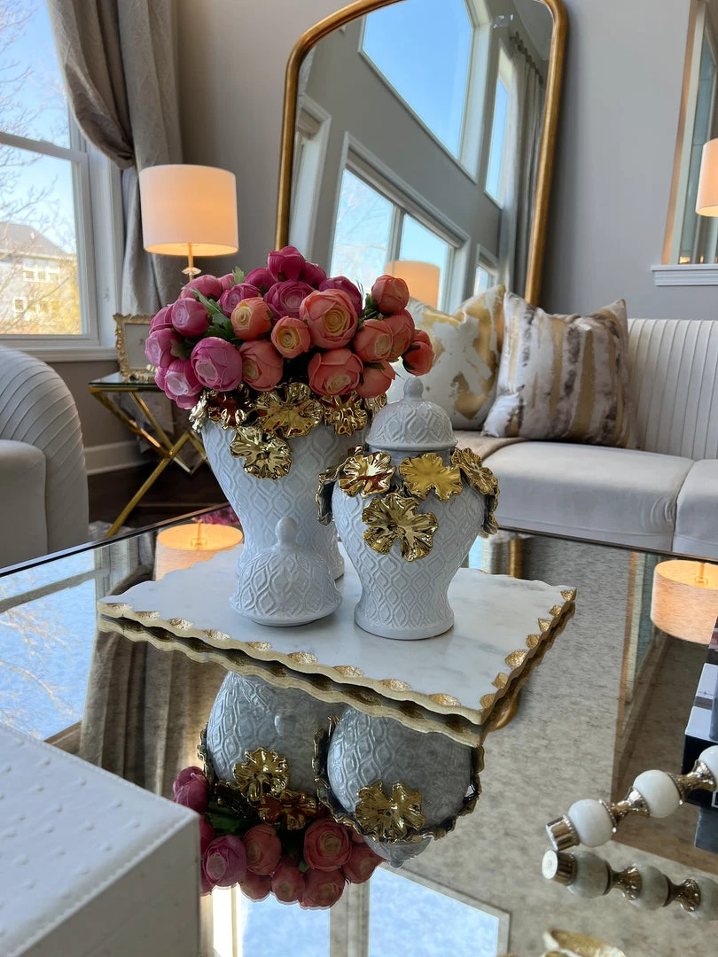 Inspire Me! Home Decor Round Marble Tray With Gold Edge And Metal Details