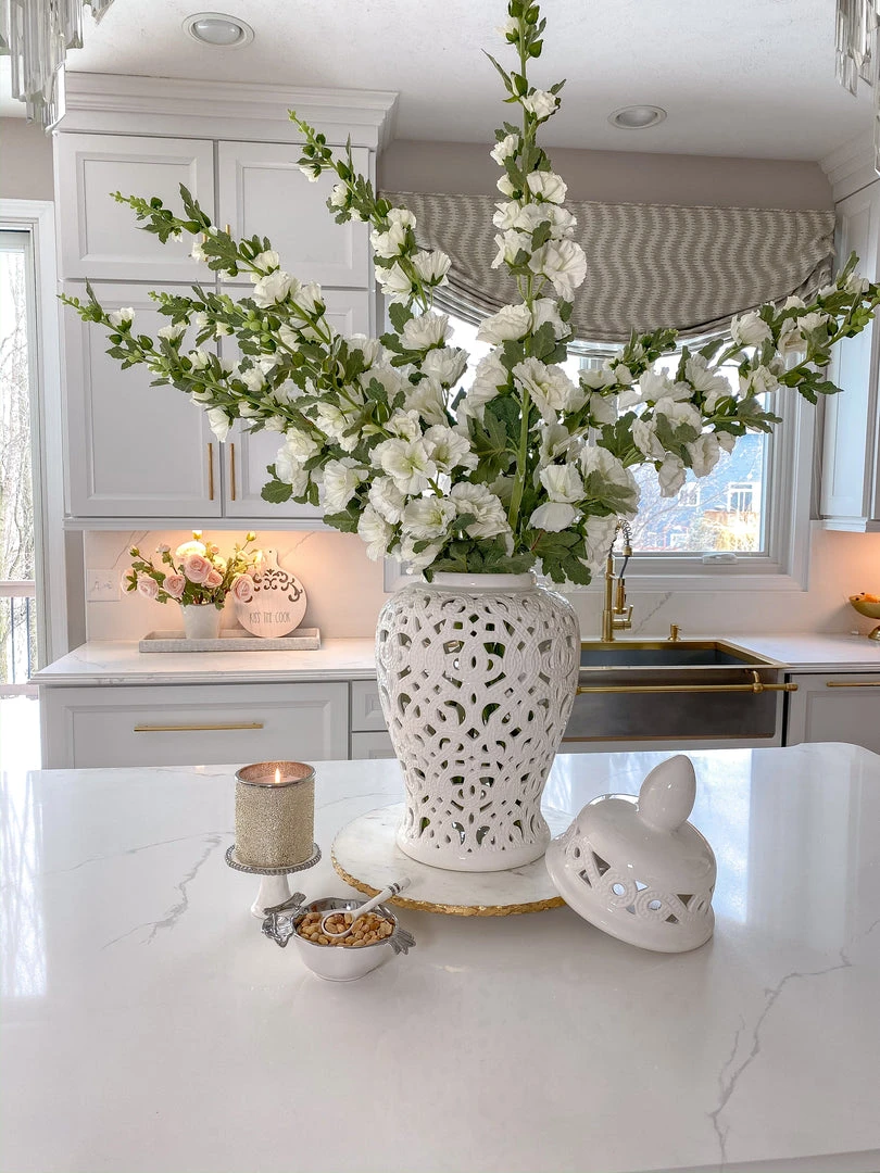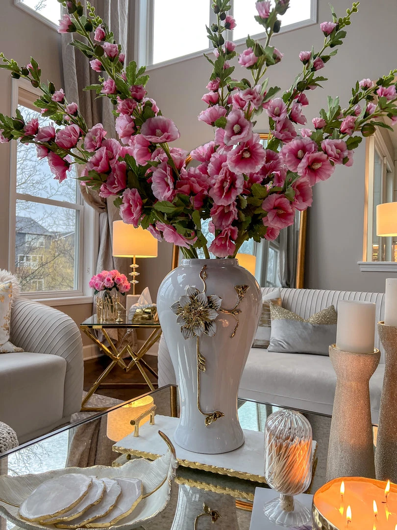 Description: This spray features one-of-a-kind blossoms with green leaves that look very realistic on a tall dark stem. Display this spray in your vases to add floral beauty to your home decor.