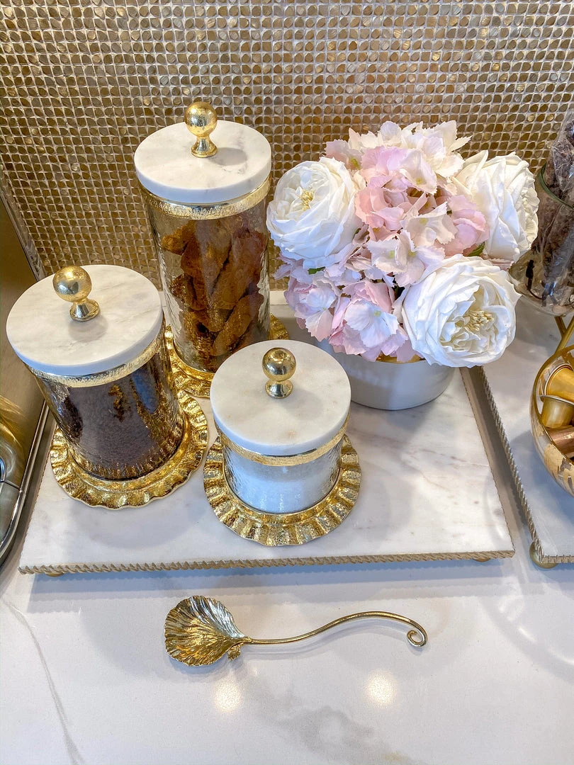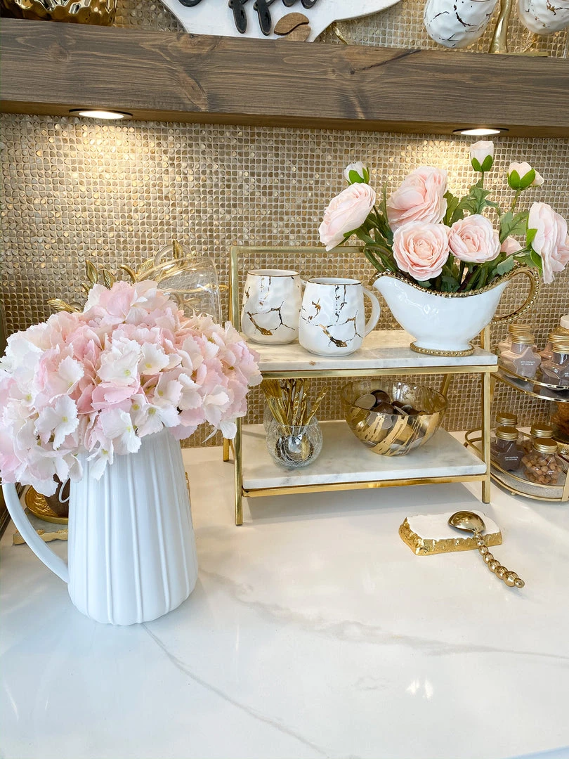 Inspire Me! Home Decor Large Rectangular Marble Tray With Cherry Blossom Details