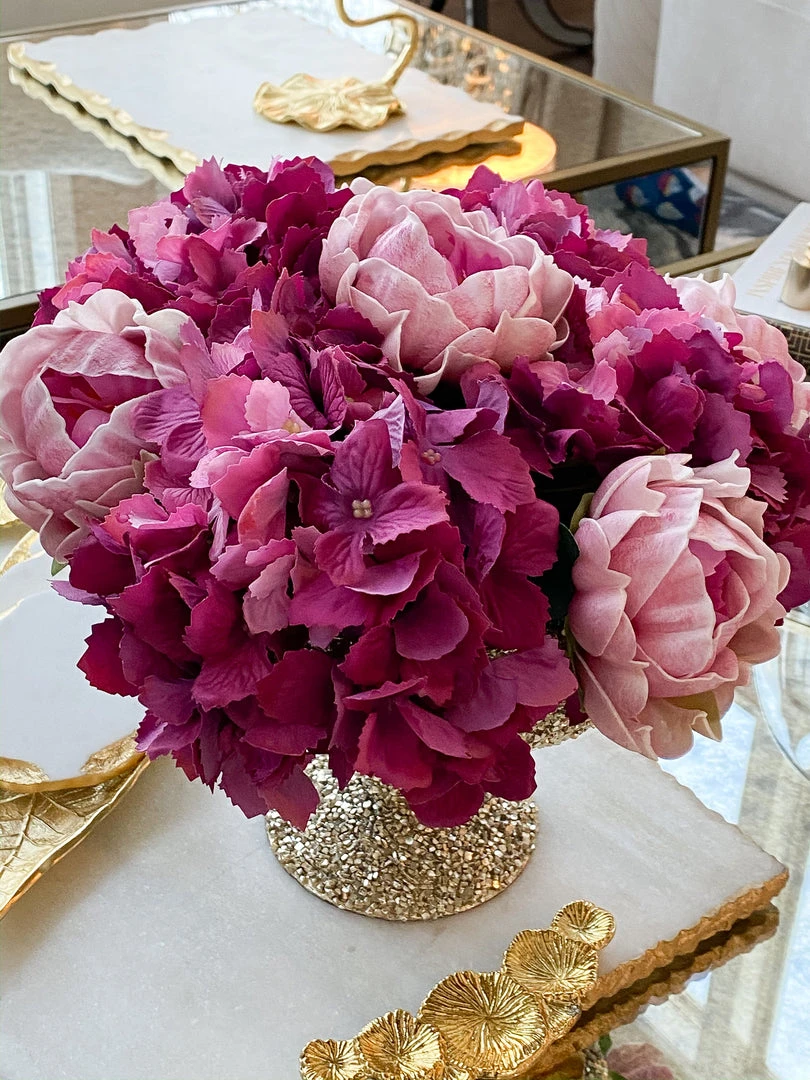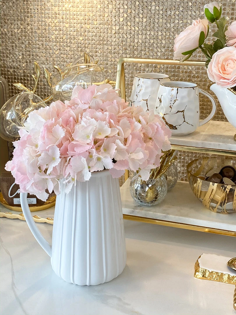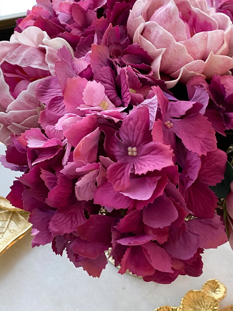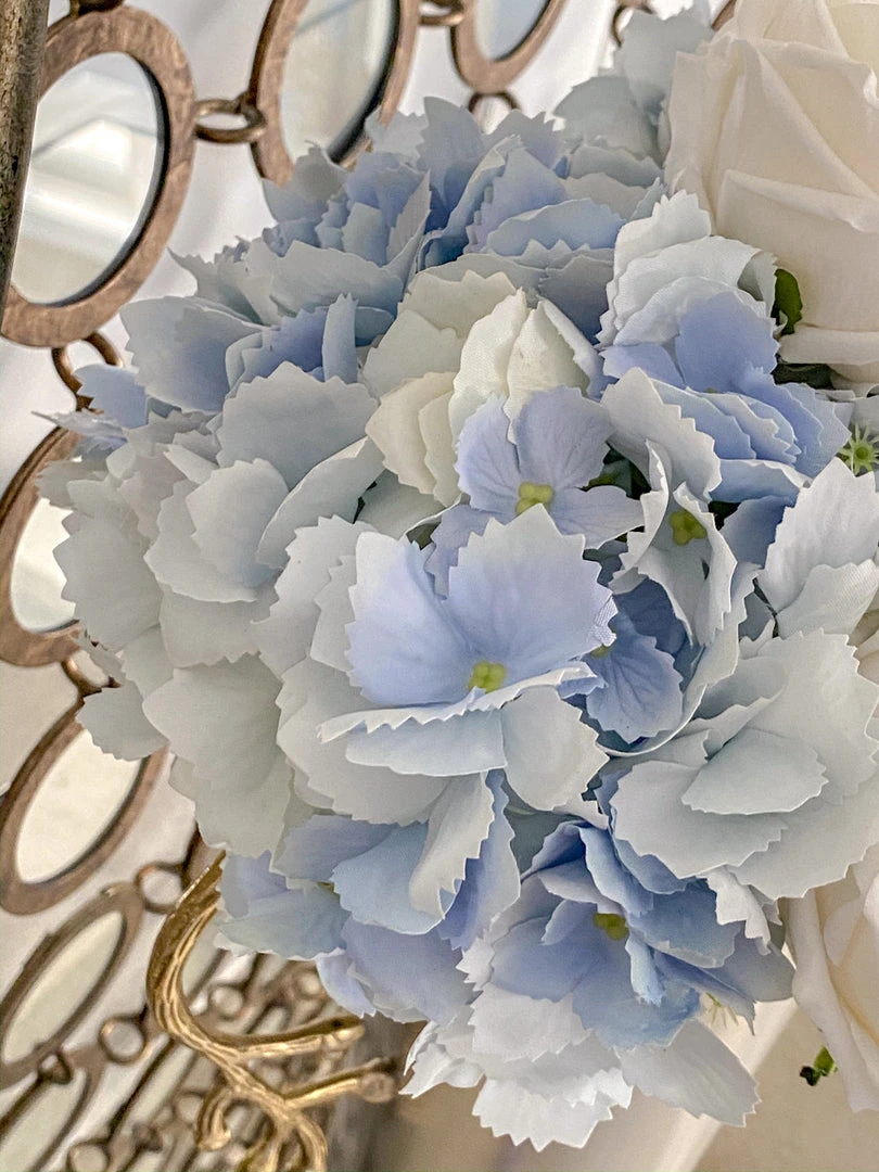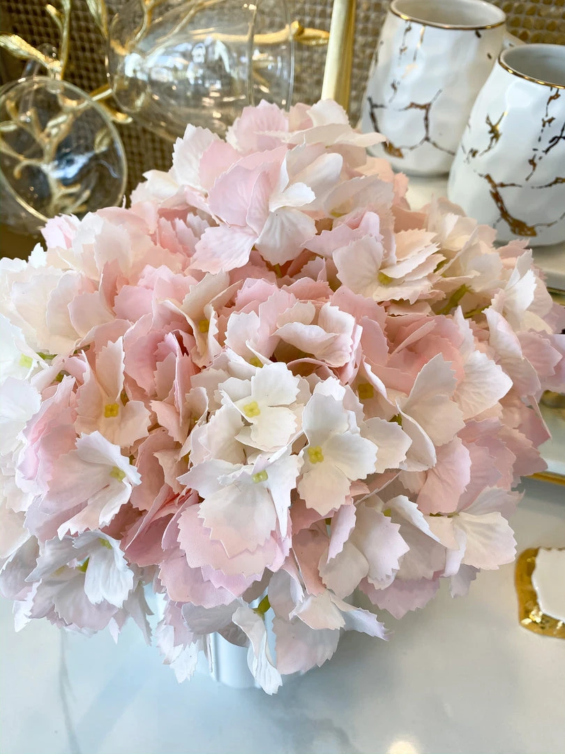These beautiful Real-Touch Faux Hydrangea Stems come in Purple, Soft Pink, White, and Light Blue.