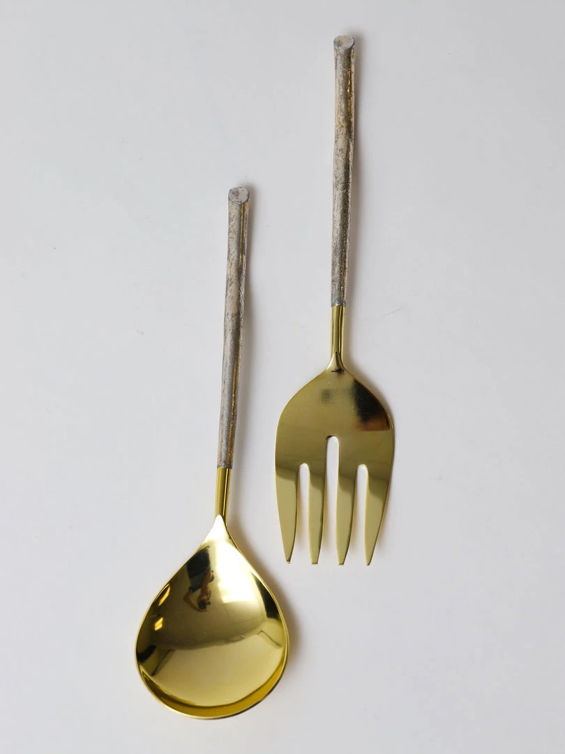 Description: This gold and silver serveware with their detailed handles are perfect for everything! They are so beautiful for a special occasions, any holiday or just for everyday dinners!