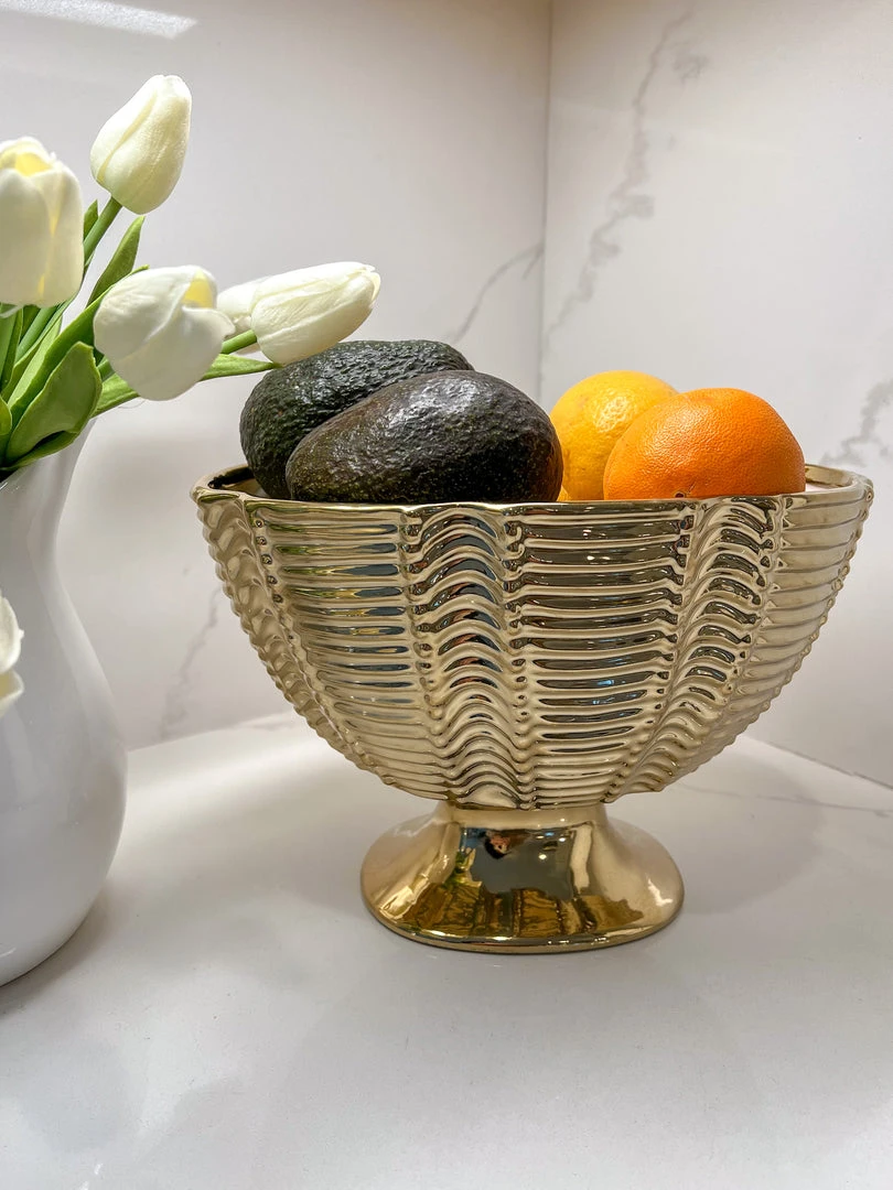 Description: This ribbed texture footed bowl is very versatile. You can use it for a candy/snack dish or as decor on your coffee table!