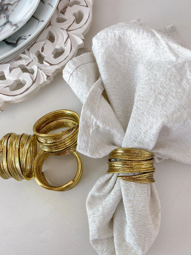 Description: These napkin rings are beautiful metallic gold and will match perfectly with your chargers and napkins.