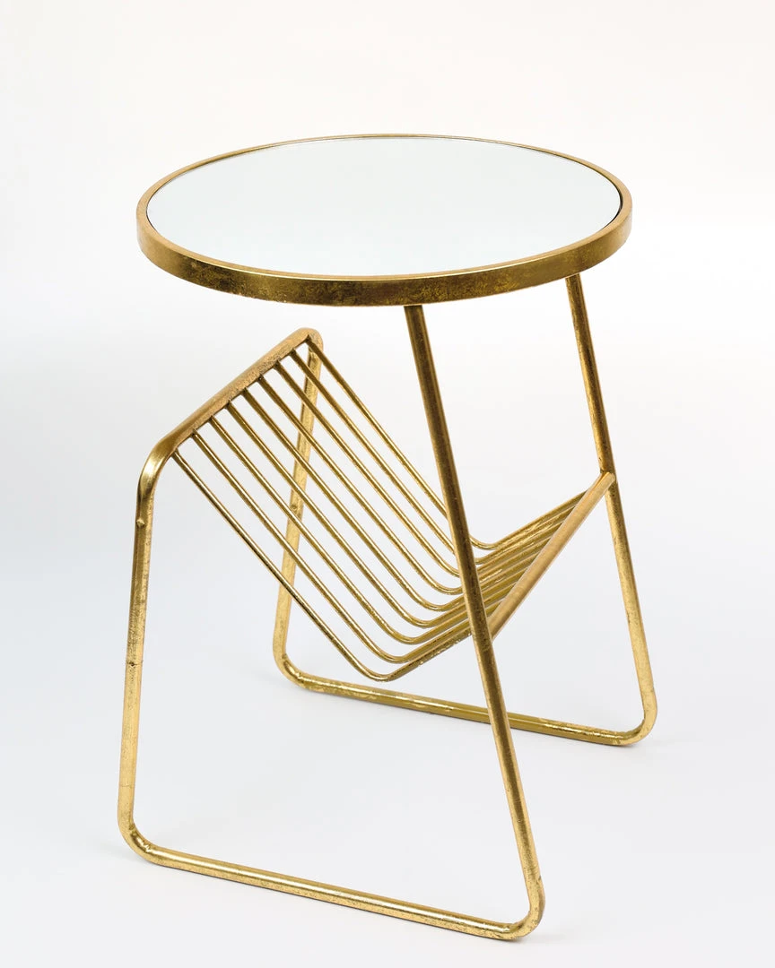 Description: This is a stylish mirror-topped metal side table with a storage/magazine rack that will be the perfect fit in your home!