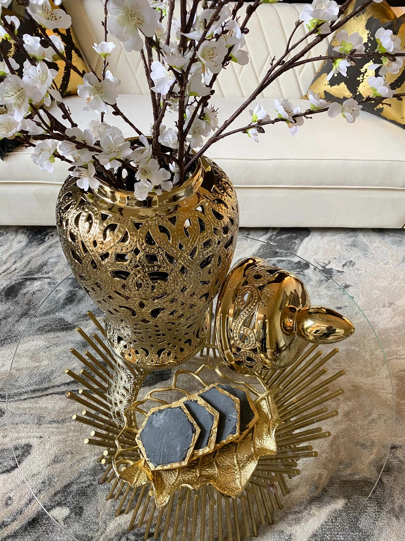 Inspire Me! Home Decor White Ceramic Jar With Elegant Gold Details (2 Sizes)