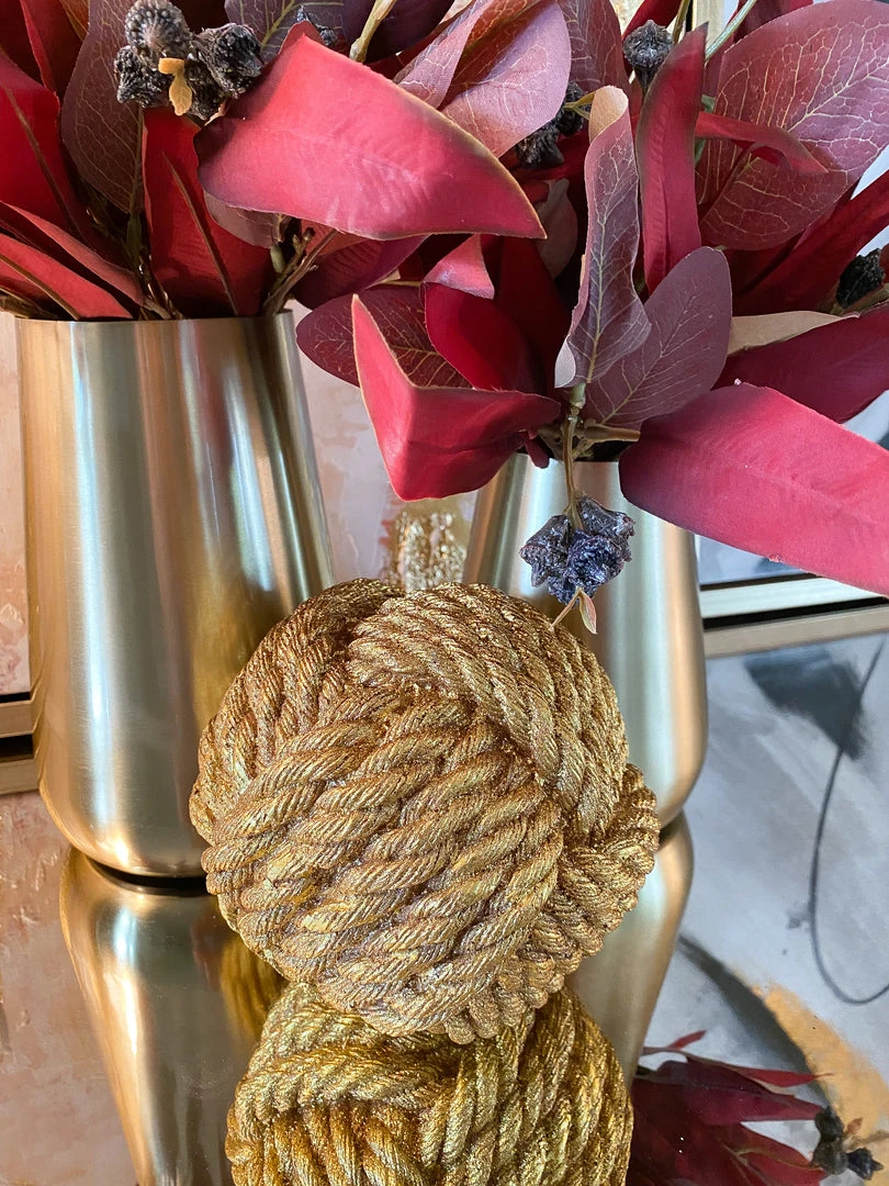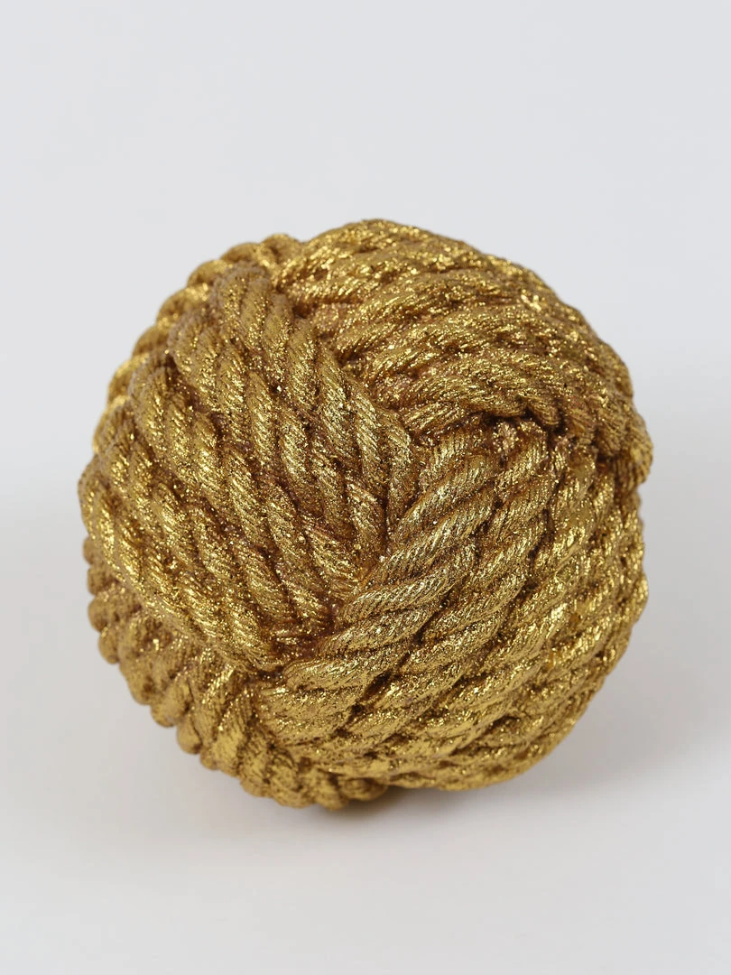 Description: This resin rope ball is a great accent for any tabletop decor. Perfect for an office or family room, the shimmering gold finish compliments any decor!