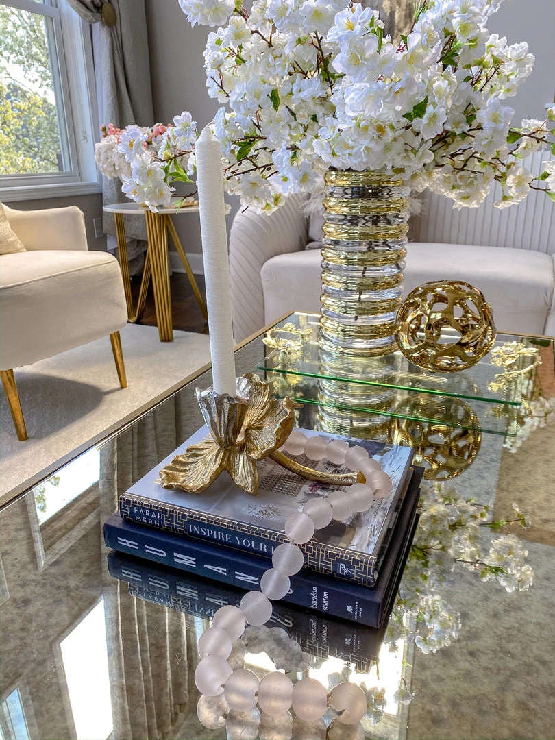 Description: This stunning floral candle holder is perfect your home! A tealight candle sits int eh center of the bloom to offer a warm glow!