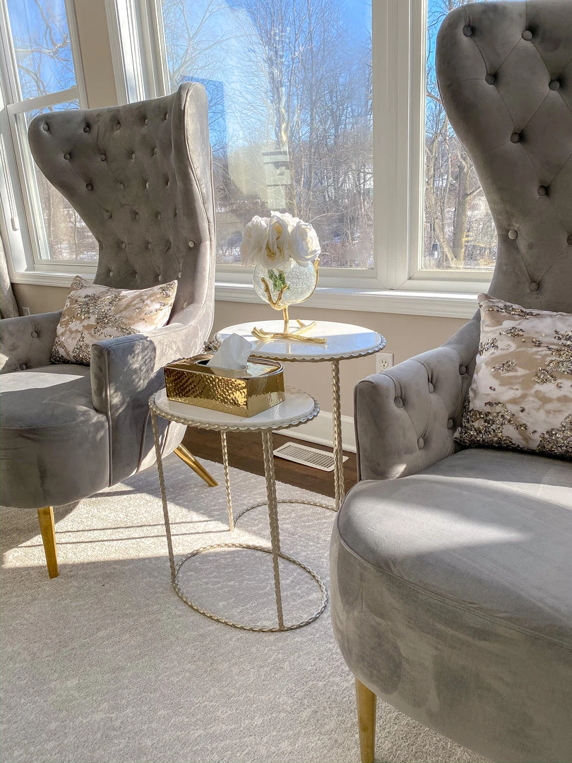 Inspire Me! Home Decor Round Marble Tray With Gold Edge And Metal Details