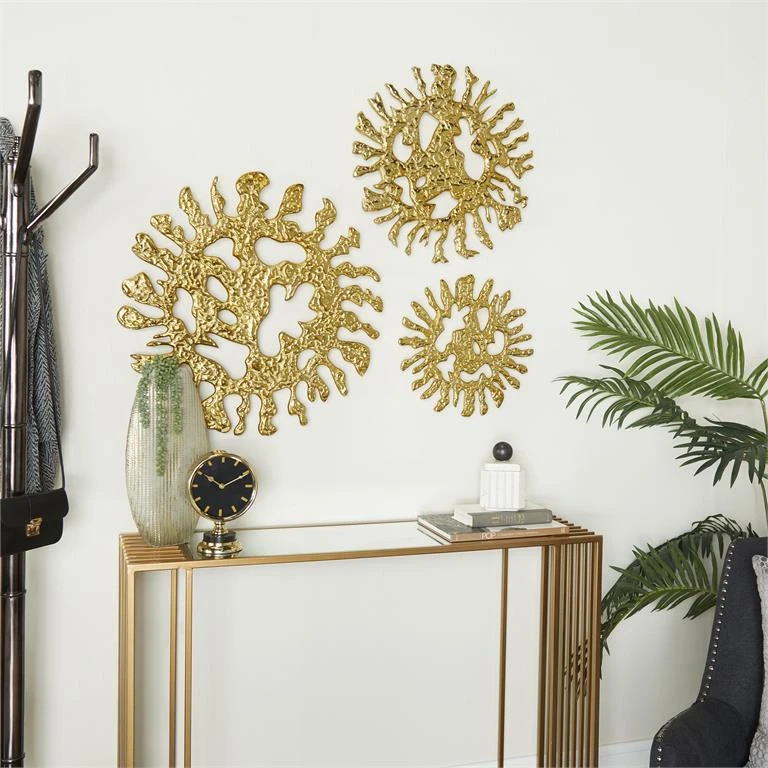 Description: This three-piece sunburst wall art set with add a dash of flair to any wall of your home with its depth and texture and will make for a captivating focal point.