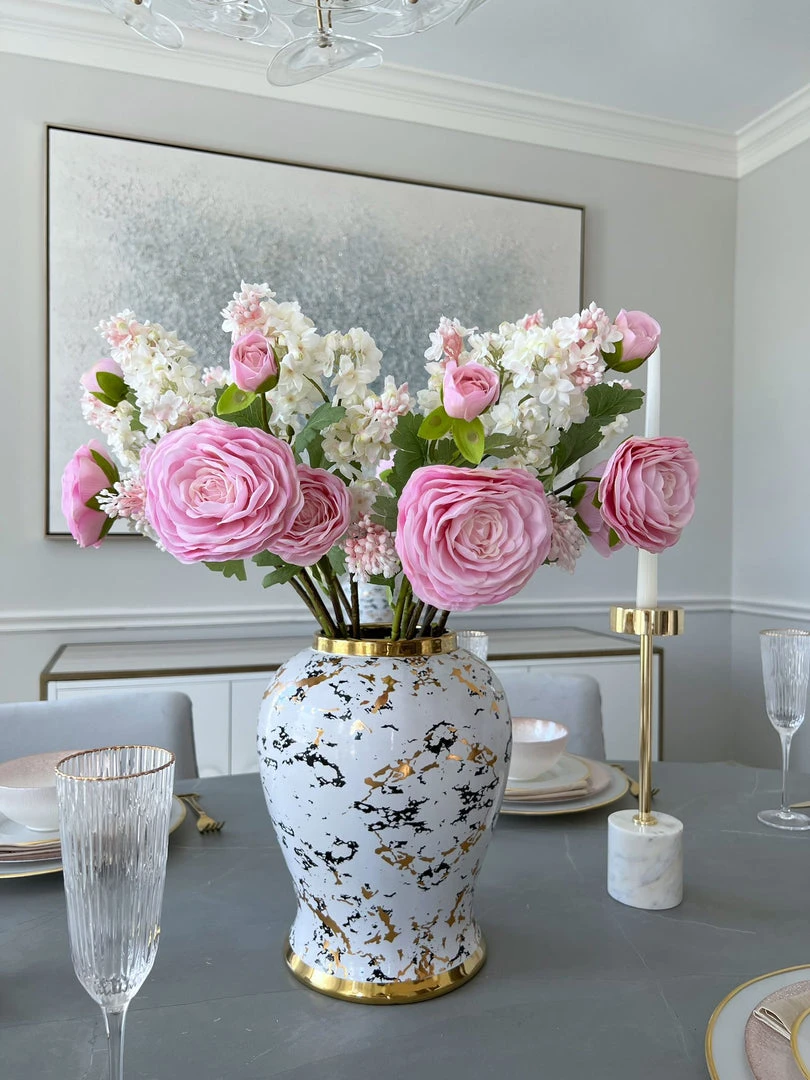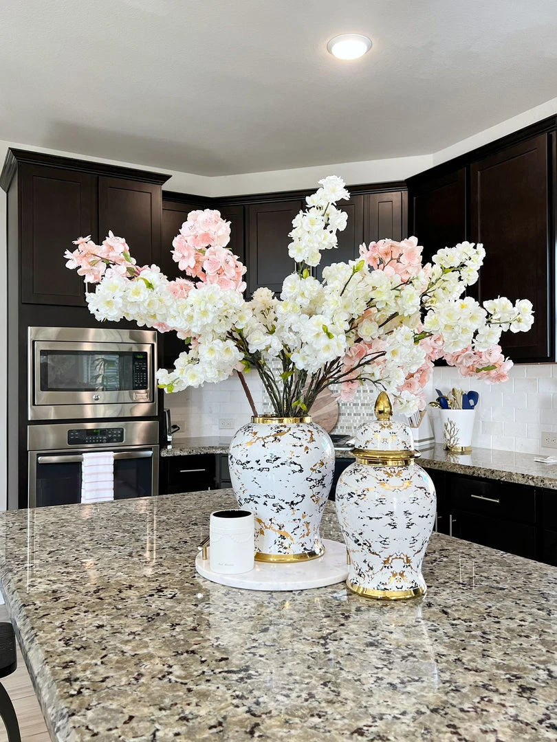Description: This gorgeous ginger jar will look stunning on its own or filled with your favorite faux florals.