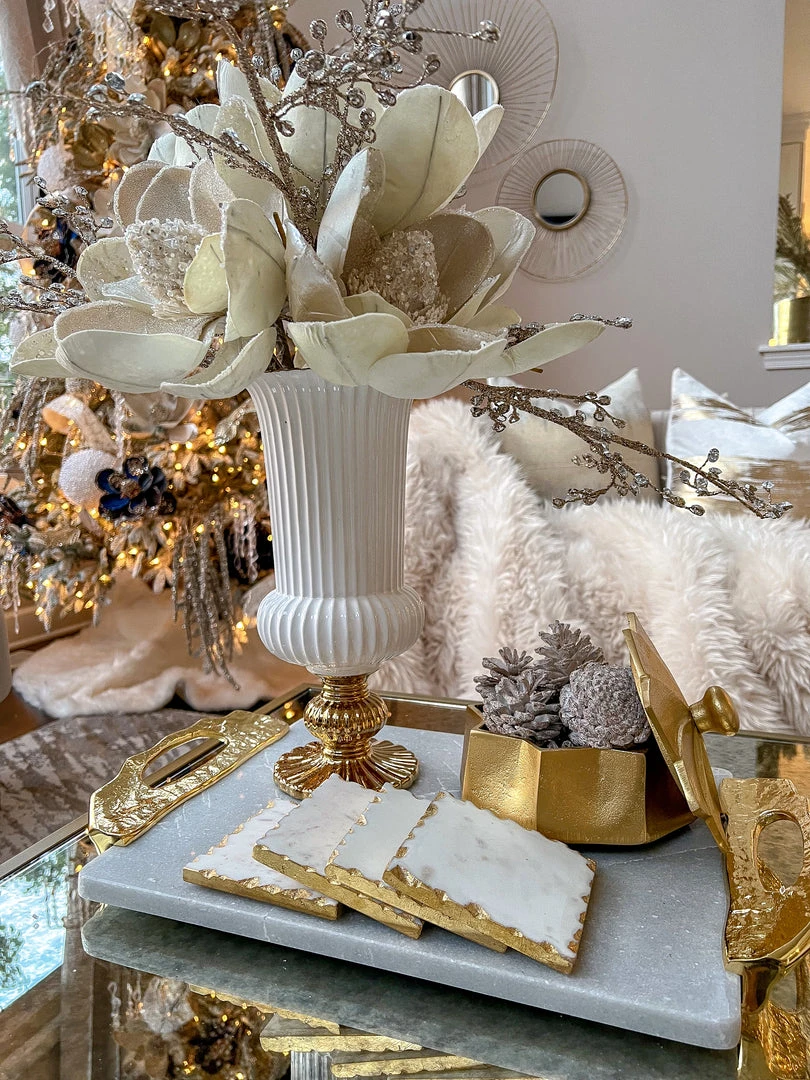 Inspire Me! Home Decor White Ceramic Candle Holder With Gold Elegant Details (2 Sizes)