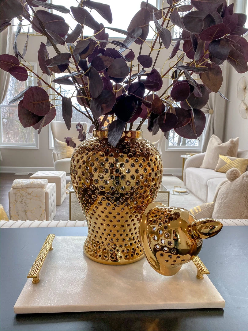Inspire Me! Home Decor White Ceramic Jar With Elegant Gold Details (2 Sizes)