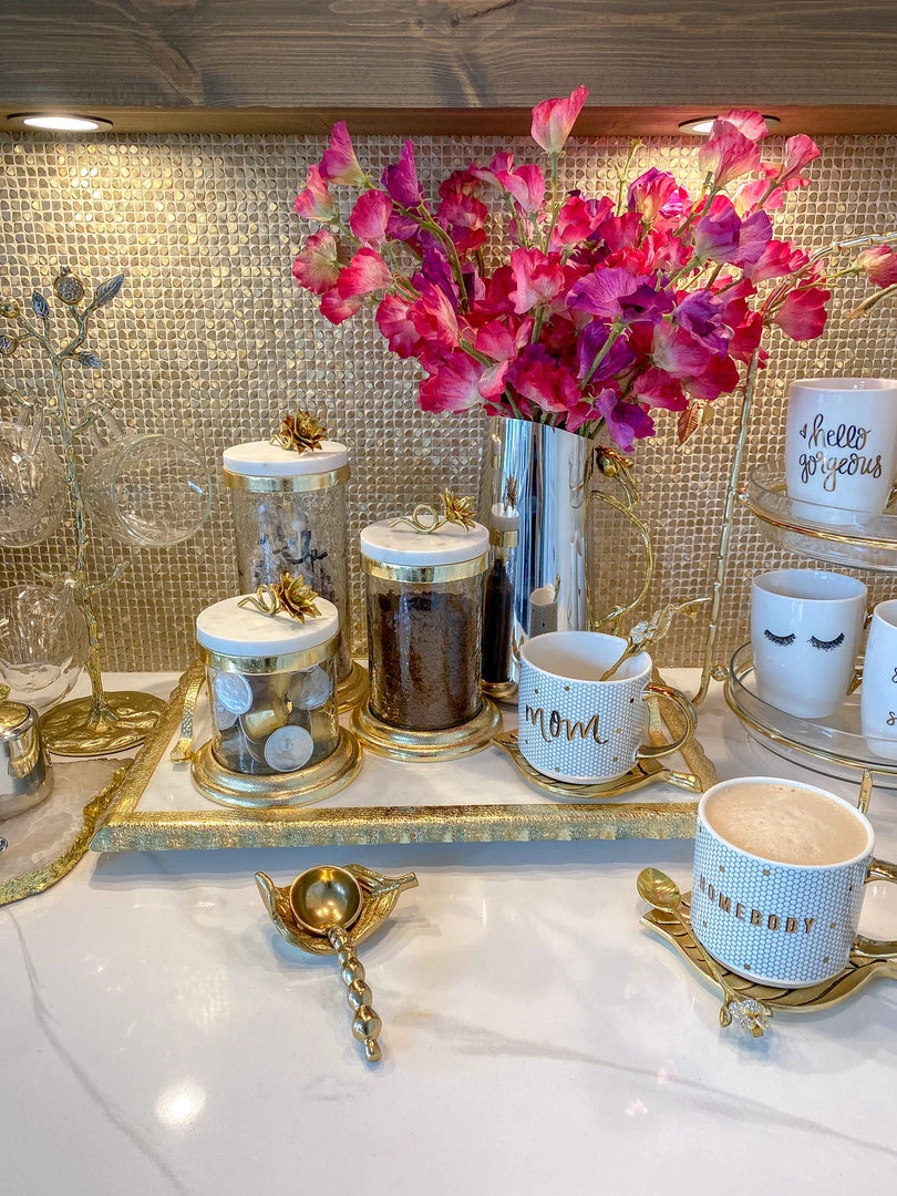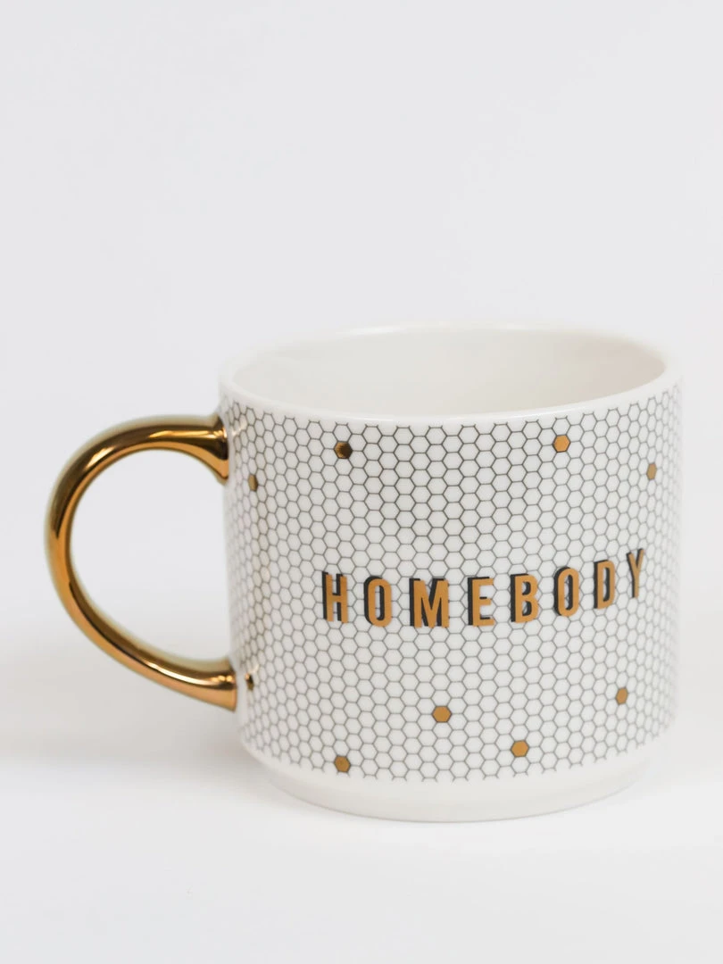 Description: To anyone who would rather stay in with your favorite hot beverage, we have the perfect much for you! This mug features a textile background with gold details and beautiful text!