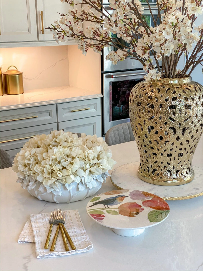 Description: This stunning cake stand is perfect for spring! We love the bright floral colors and the adorable little bird centered in the image. Pefect for a kitchen or bath display!
