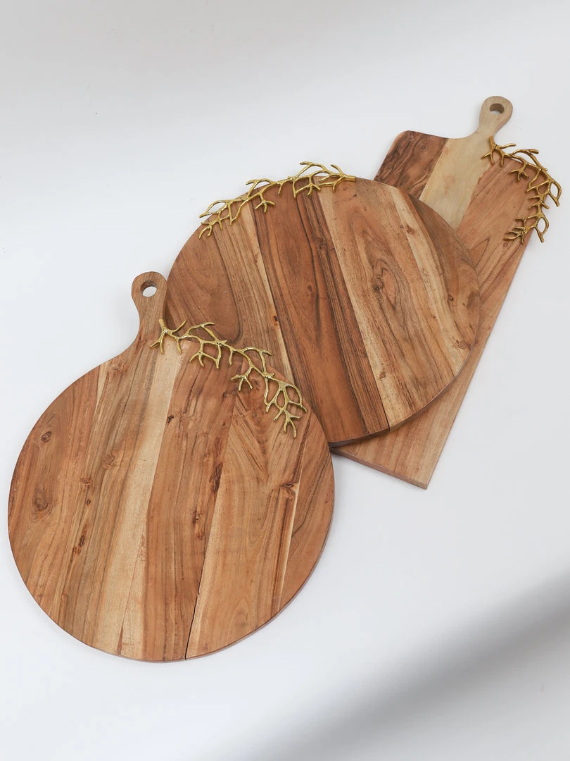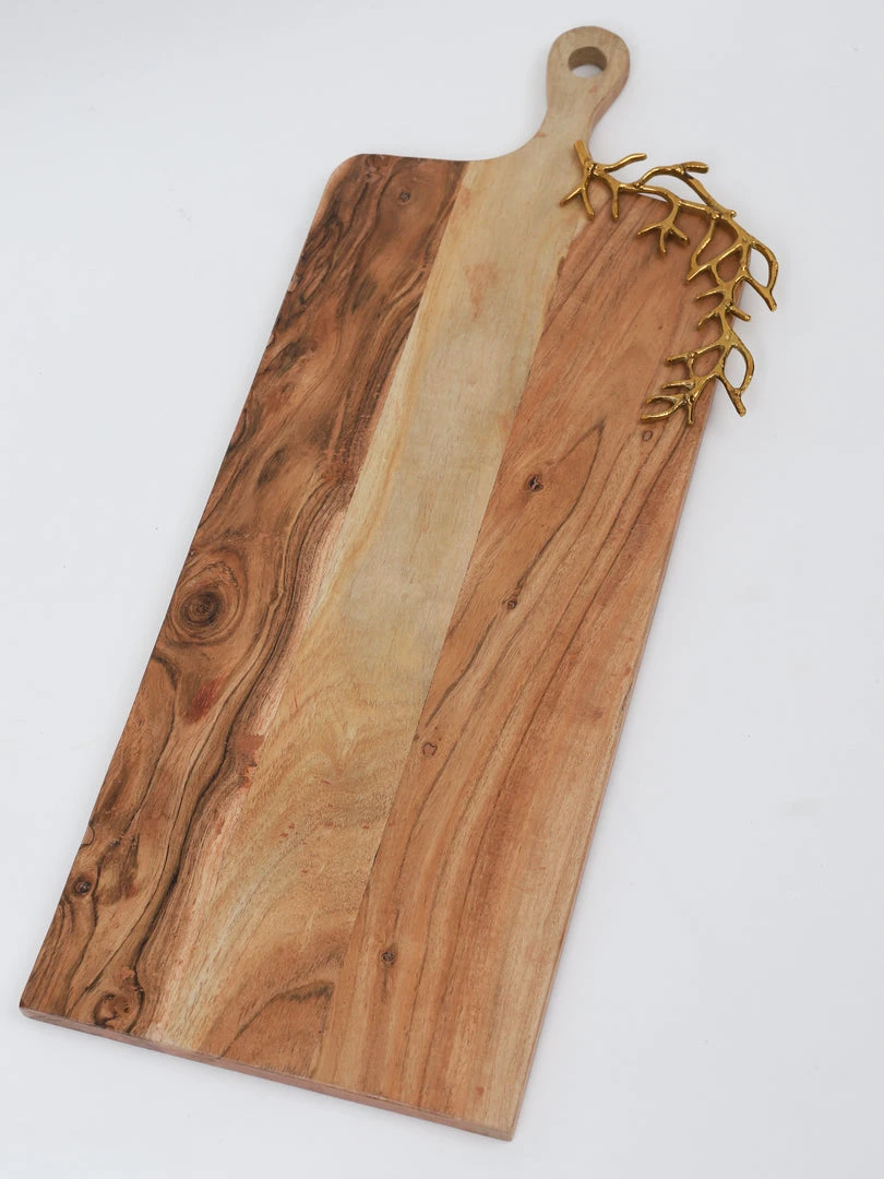 Description: This beautiful Charcuterie Board with its gold textured design will add a unique elegance to your serving display! Stand it up and layer it with other boards!