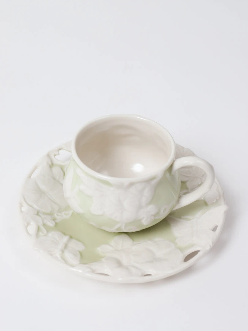 Description: This is a beautiful butterfly cup and saucer set! The set includes 2 cups and 2 saucers.
