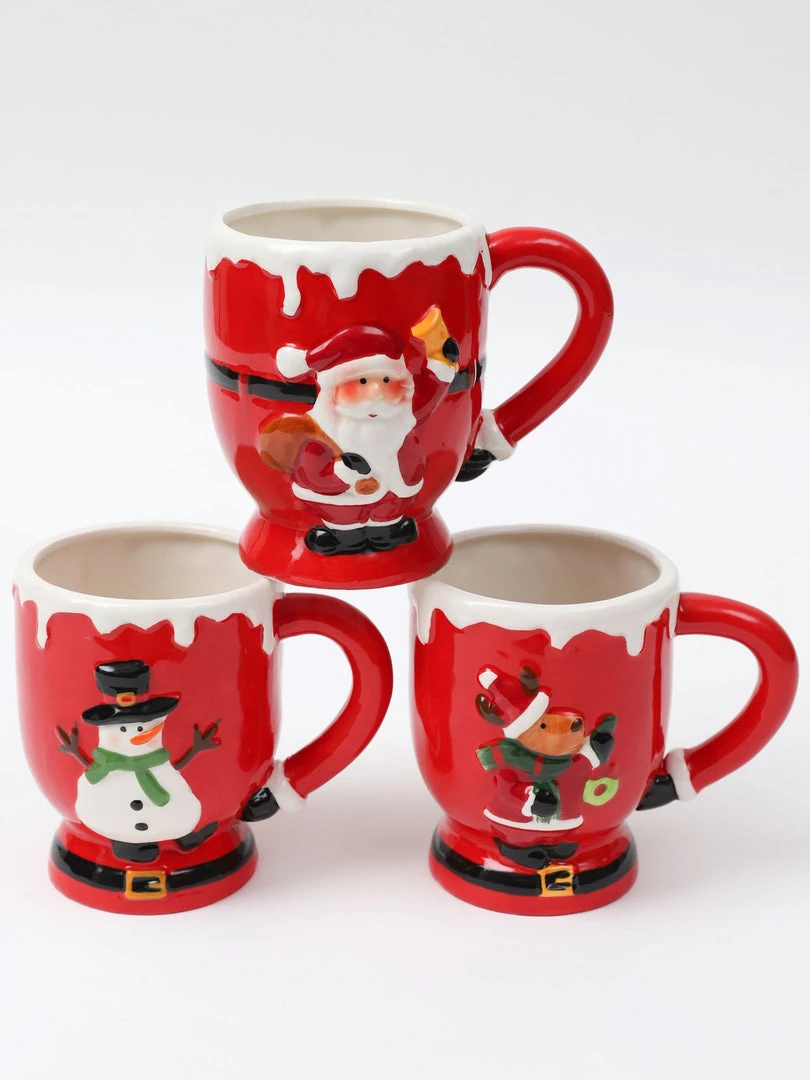 Description: These adorable holiday mugs feature snowy characters that will bring some joy to your holiday season!