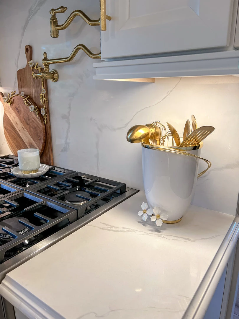 Inspire Me! Home Decor Large Rectangular Marble Tray With Cherry Blossom Details