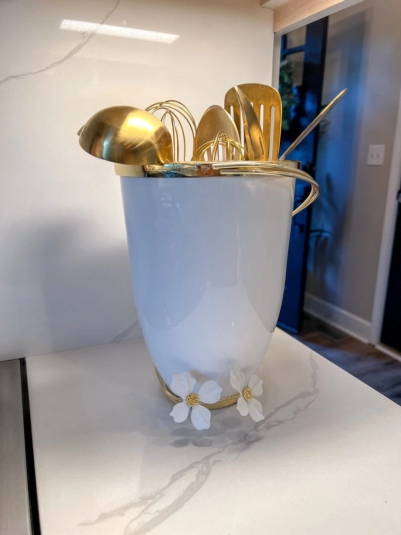 Description: The substantial white porcelain centerpiece has the white jeweled flower details and is simply stunning!