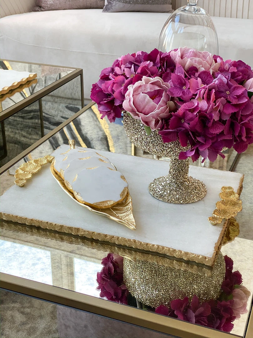 Description: A beautiful gold leaf tray perfect for displaying any of our coasters!