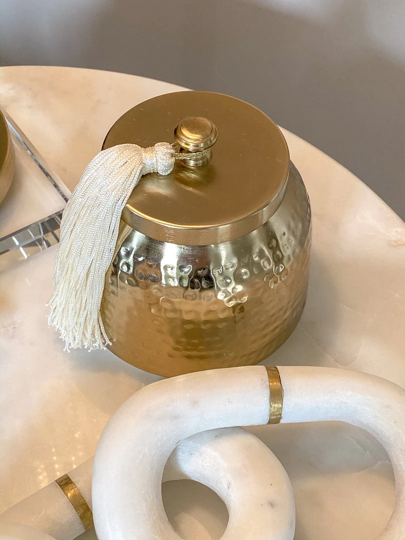 Inspire Me! Home Decor White Ceramic Candle Holder With Gold Elegant Details (2 Sizes)