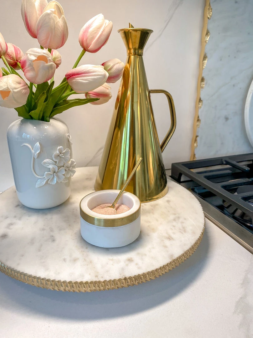 Inspire Me! Home Decor Round Marble Tray With Gold Edge And Metal Details