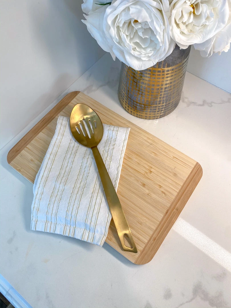 Description: This stunning gold slotted spoon will help you serve up some style! We love the matte gold finish and sleek design.