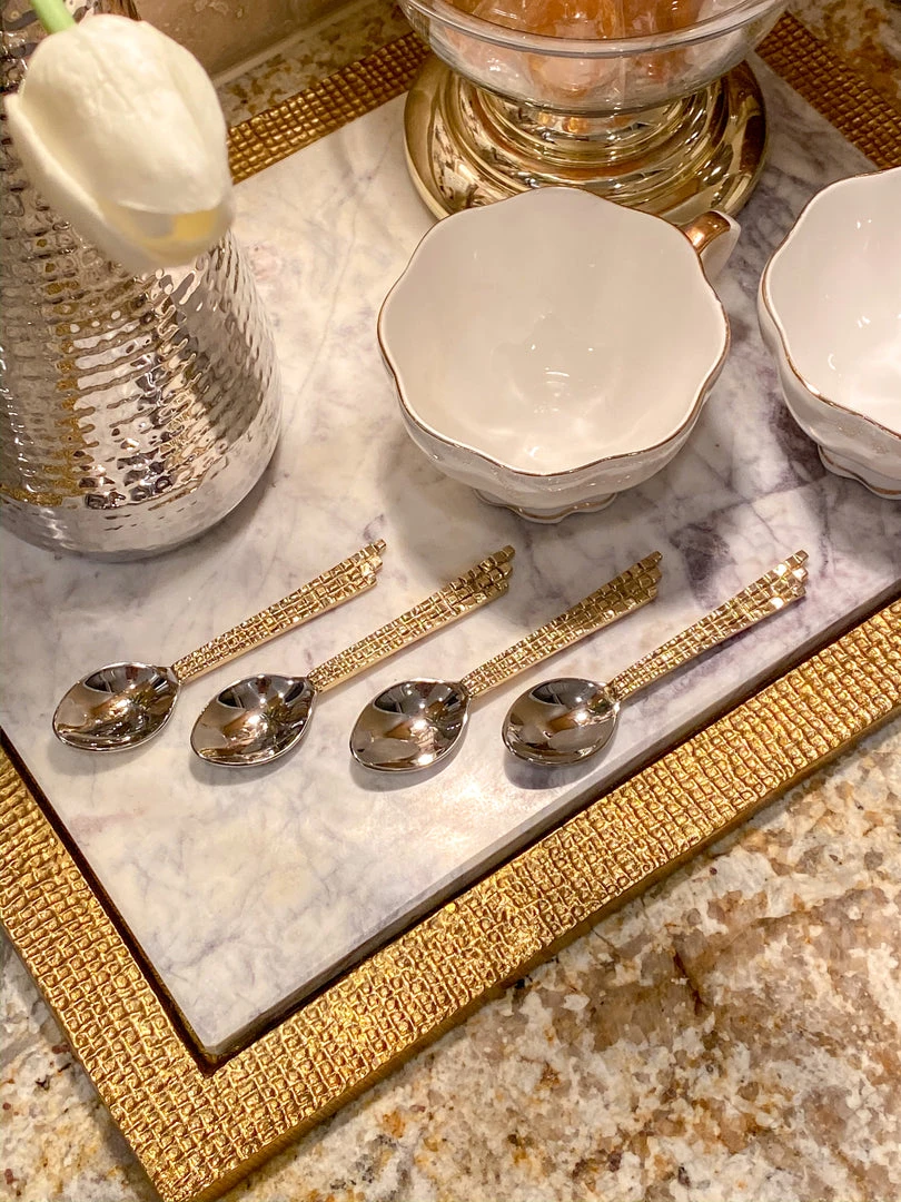 Matching back to the mosaic collection, this tea spoon has the same metal texture and pattern! Who doesn’t love a pretty spoon!Â