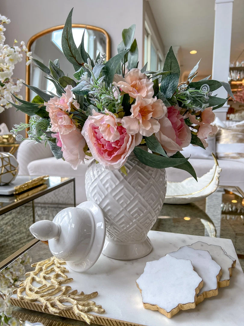 Inspire Me! Home Decor Large Rectangular Marble Tray With Cherry Blossom Details
