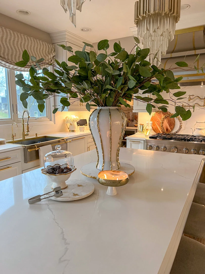 Description: This round marble platter features gold bee inlays and a hexagon pattern! We love the little details that make it so interesting!