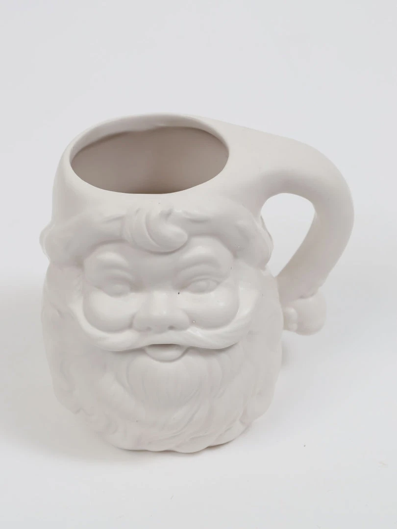 Description: These white Santa mugs are a holiday need. Can be used to drink your favorite winter drink or use to put stems in!