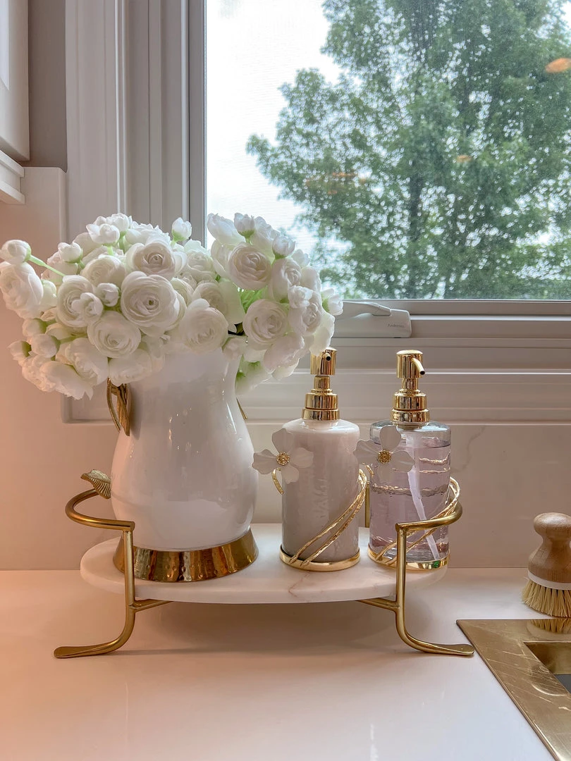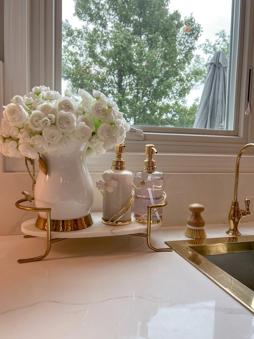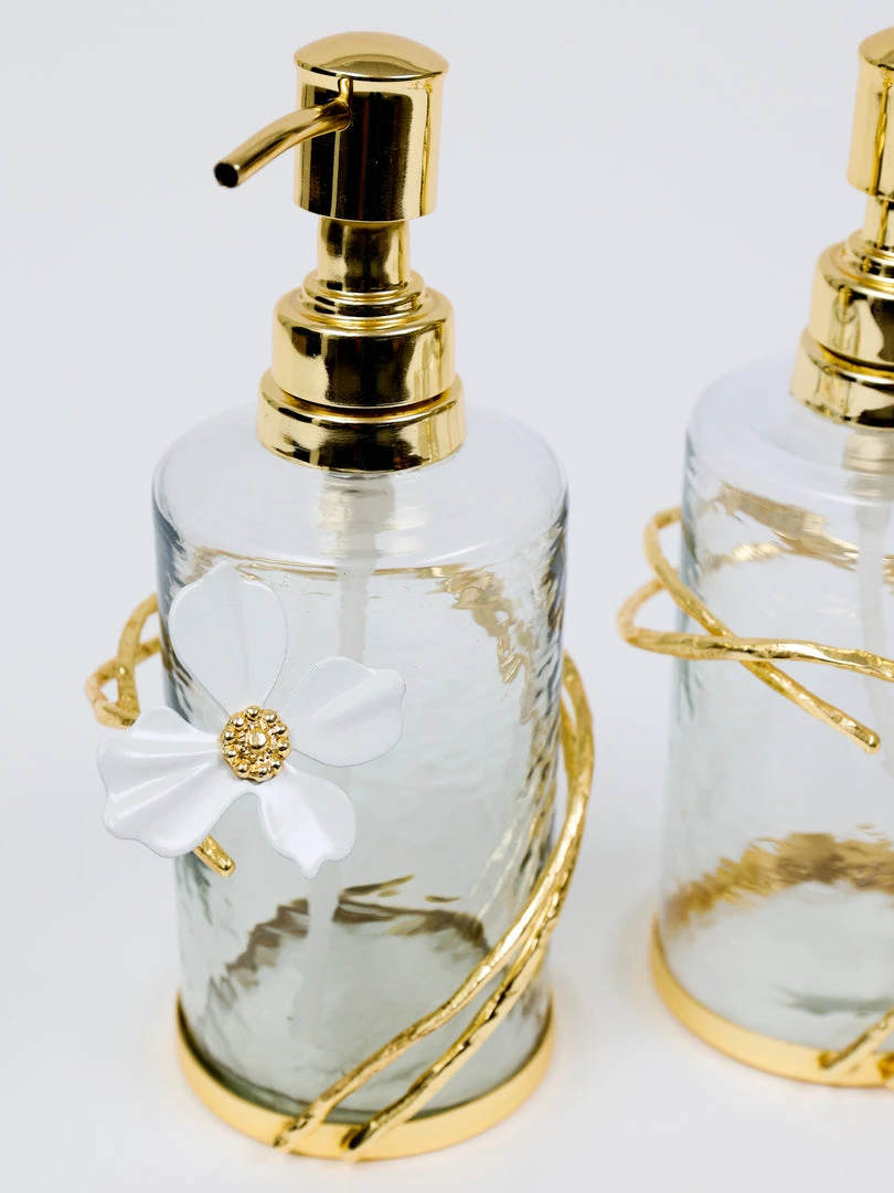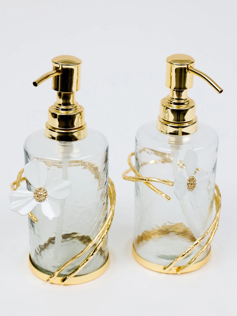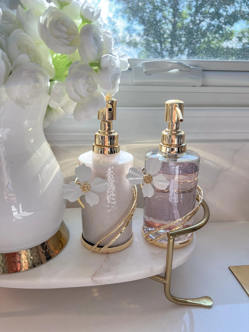 Description: This is a soap and lotion pump which ties back into the design with the white beaded flower collection. This will look stunning in your bathroom or on your kitchen counter.