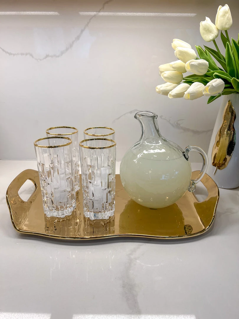 Description: This is a set of four glasses that will look beautiful where ever they are displayed, whether you choose to use them as drinking vessels or as a minimalist vase for your flowers.
