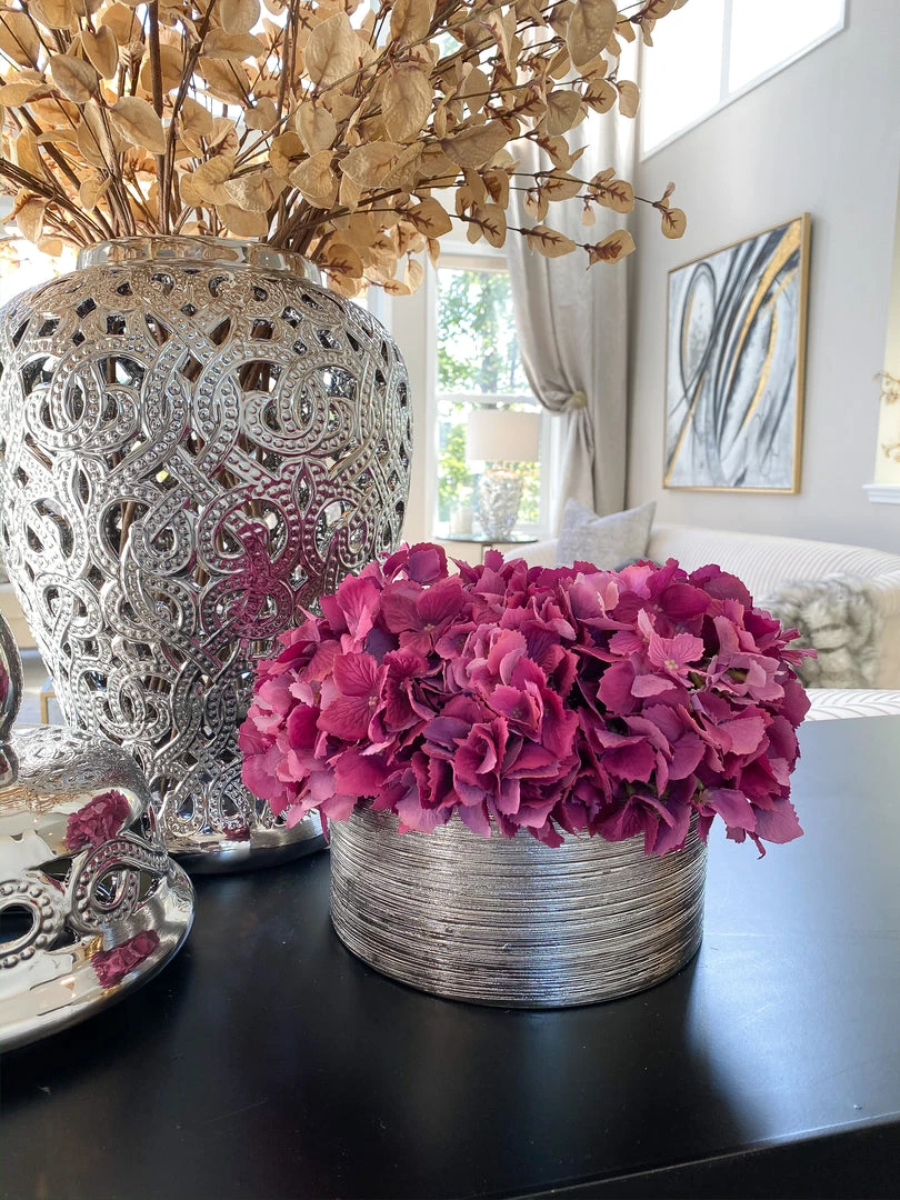 Description: This silver cut-out ceramic ginger jar is perfect for any decor!