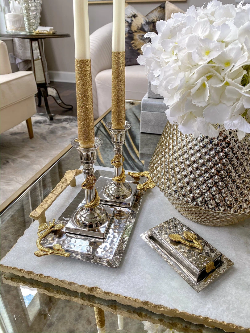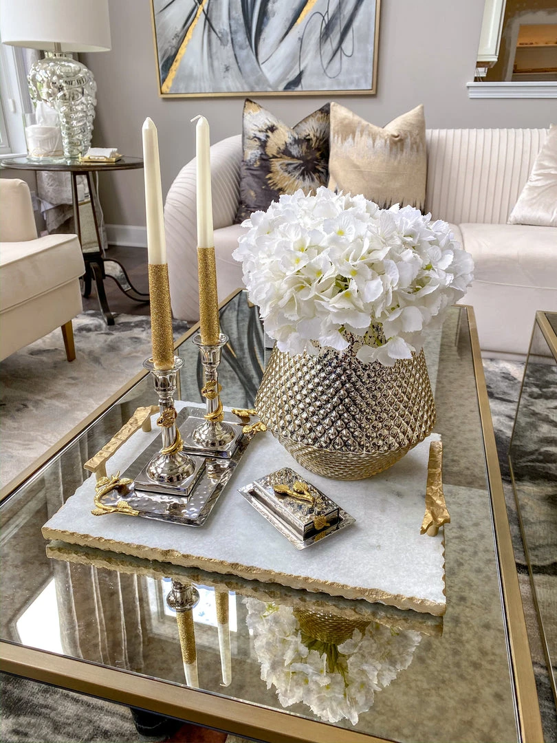 Inspire Me! Home Decor Rectangular Marble Tray With Cherry Blossom Details