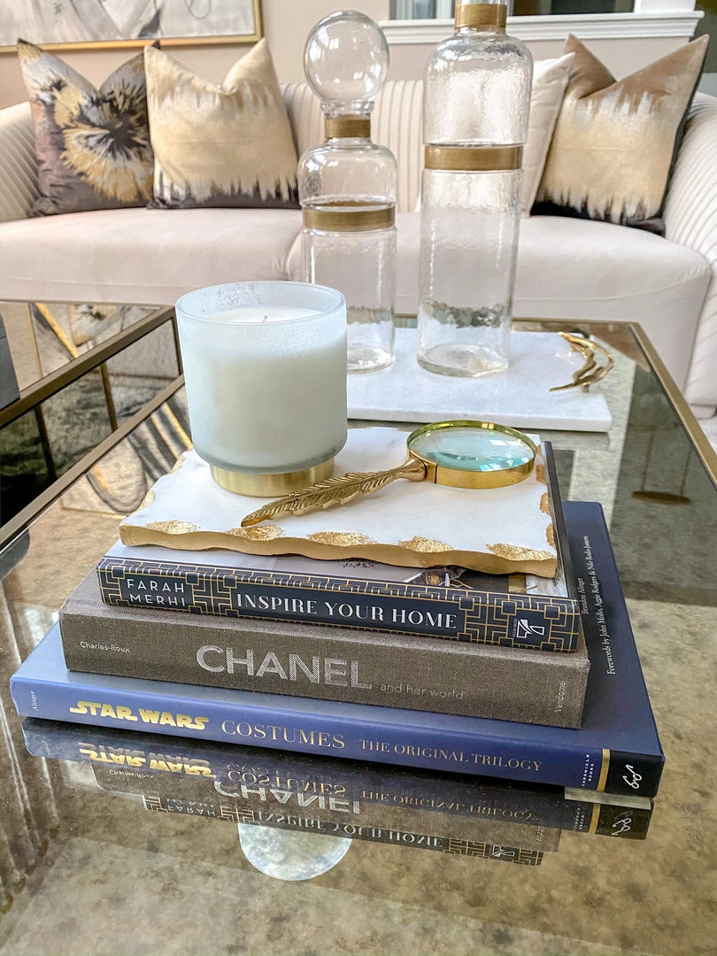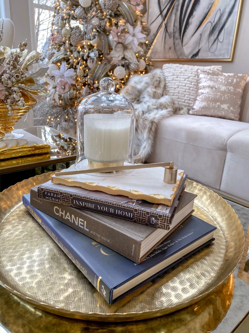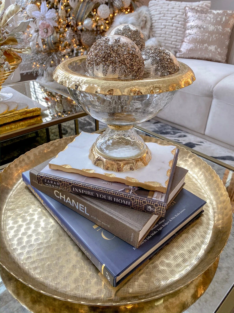 Inspire Me! Home Decor Round Marble Tray With Gold Edge And Metal Details